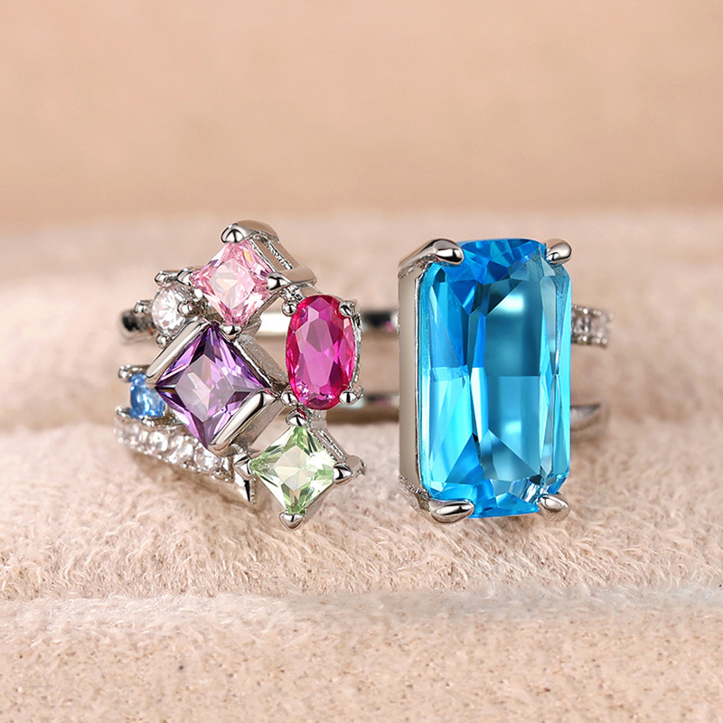 Exaggerated light luxury zircon open finger ring niche design high-end ring fashionable colorful geometric ring