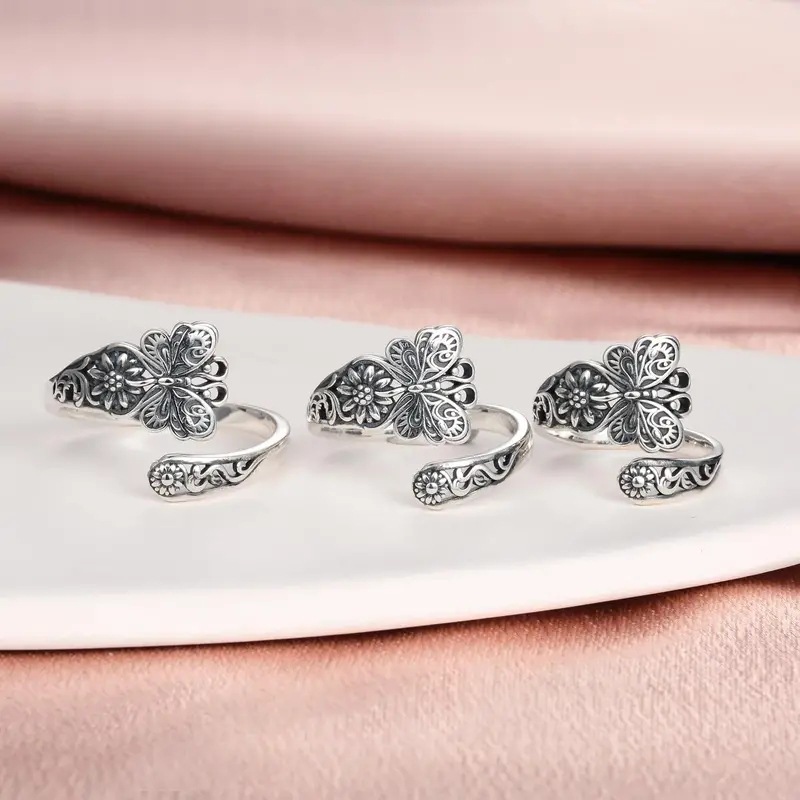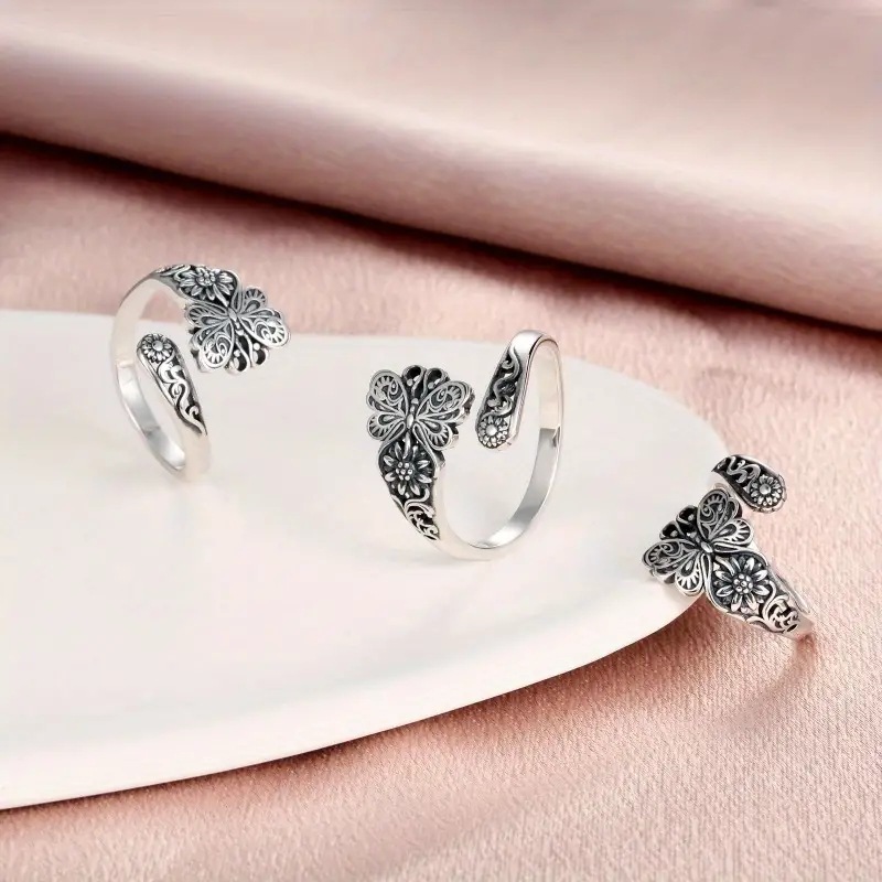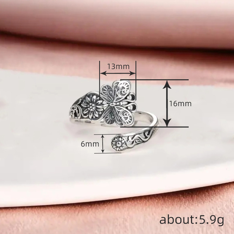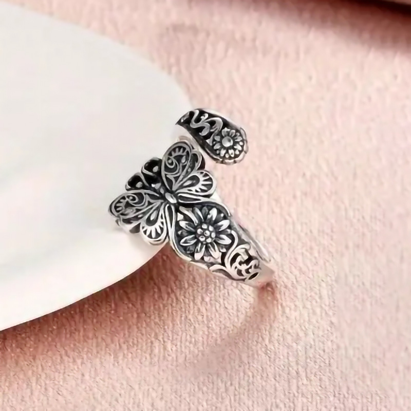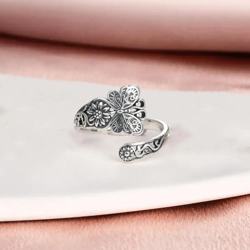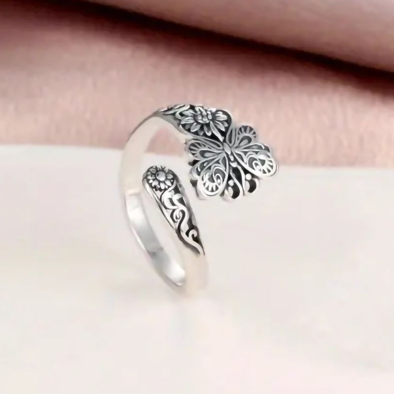 Exotic Bohemian style ring for women, open and adjustable vintage jewelry, butterfly relief ring