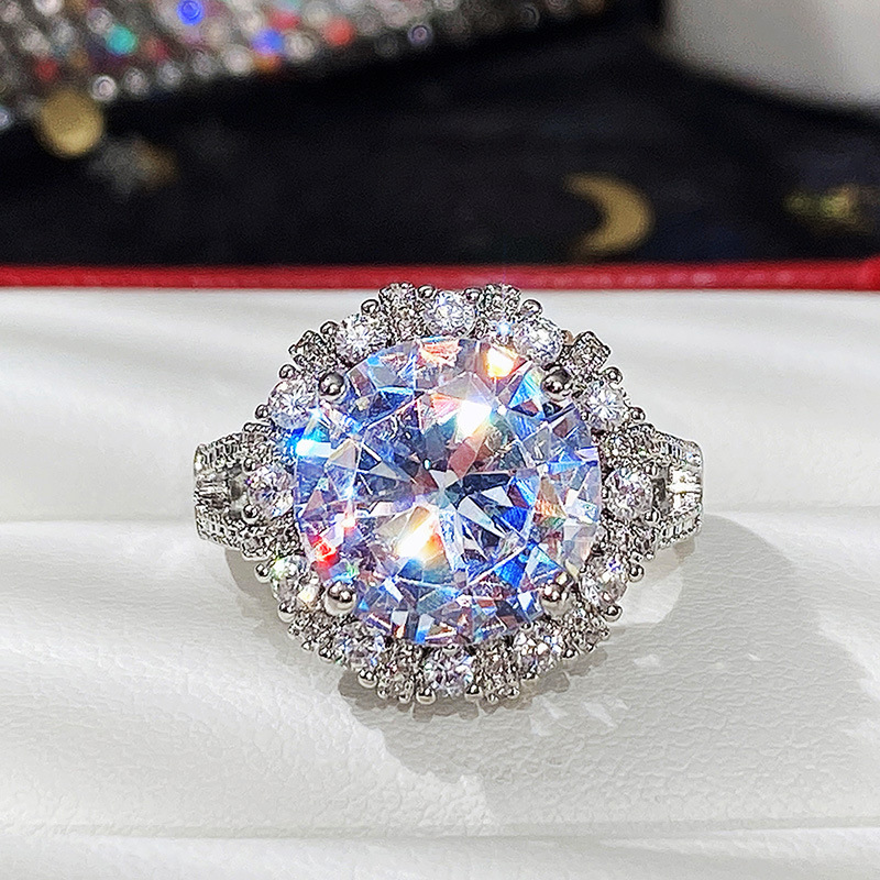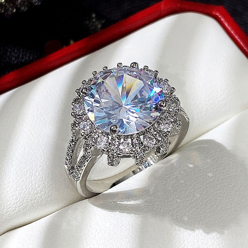 Micro-inlaid celebrity style classic all-match popular ring six-claw zircon wedding ring European and American style light luxury ring
