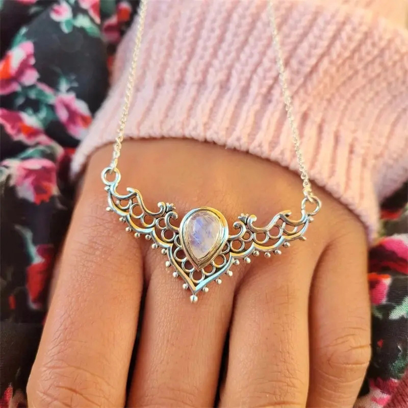 Exquisite and fashionable hollow necklace with antler inlaid imitation moonstone, princess necklace