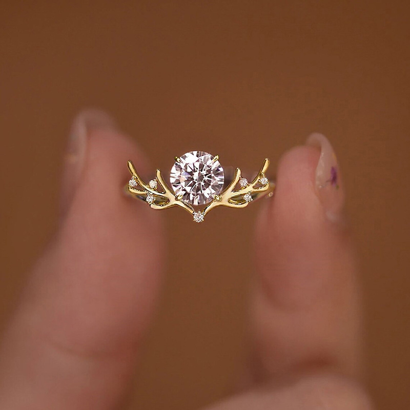 Exquisite antler inlaid zircon ring for women Christmas new trendy ring for women light luxury style fashion earrings