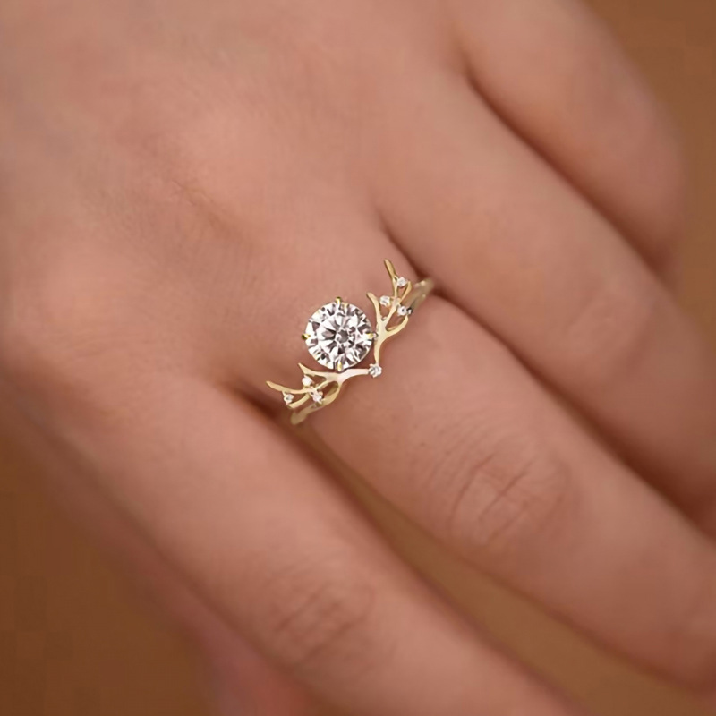 New best-selling super flash ring tree branch bud four-claw inlaid ring light luxury wedding ring for girlfriend