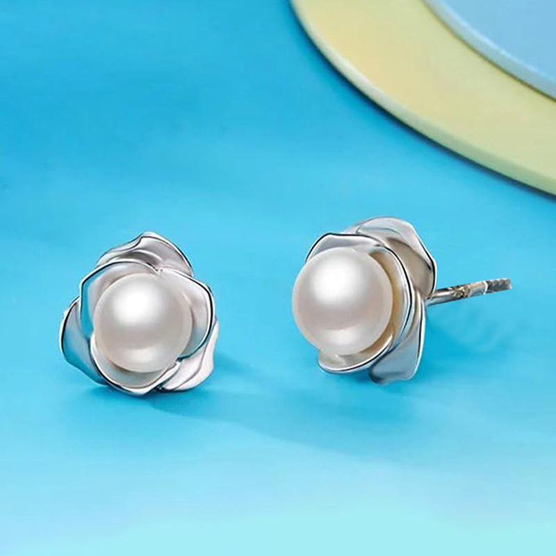 Exquisite lustrous pearl flower jewelry set, elegant and fresh, exquisite earrings, pastoral everyday necklace