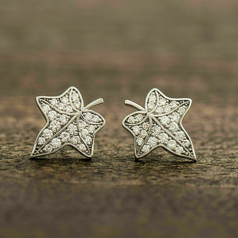Exquisite maple leaf zircon earrings 2024 new hot style earrings temperament niche design earrings for women