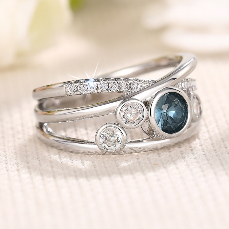 European and American luxury design ring fashionable temperament horse eye zircon ring multi-layer hollow design index finger ring