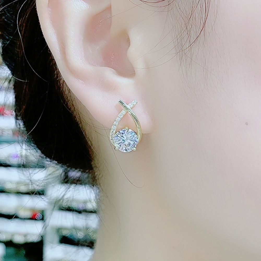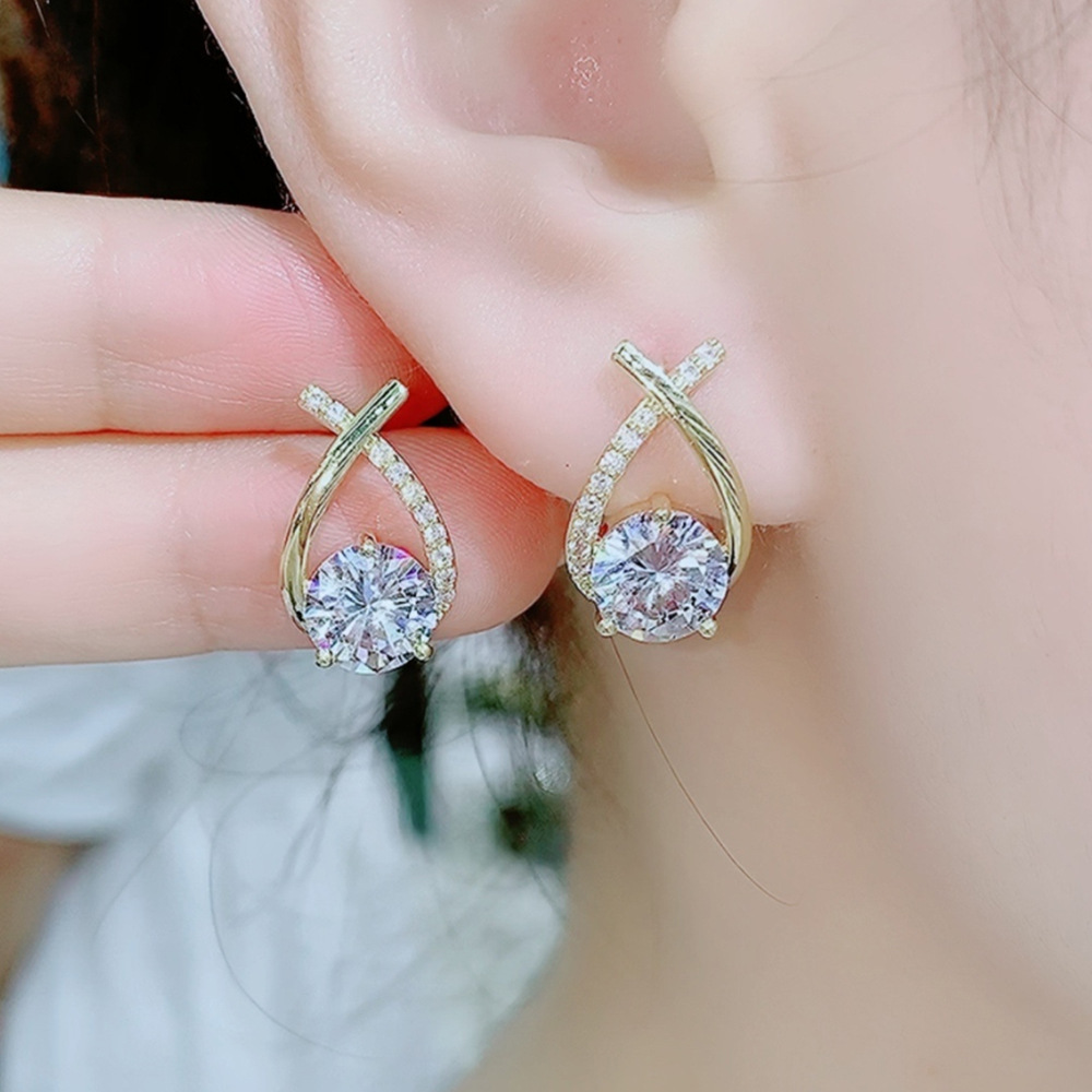 Exquisite small earrings, high-end light luxury zircon super flash design, versatile cross earrings for women