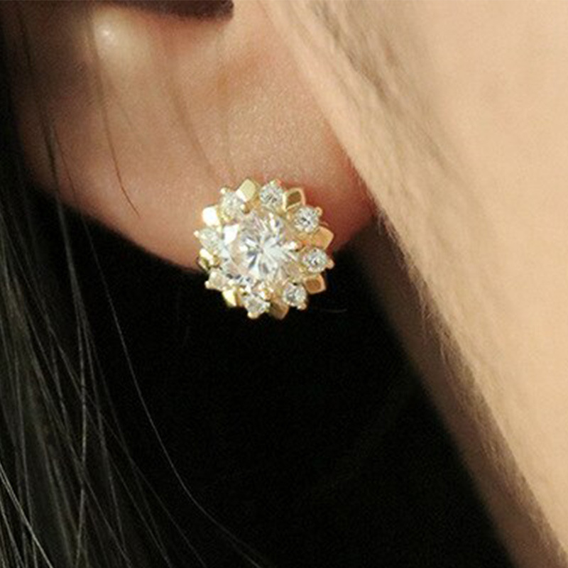 Exquisite sunflower earrings, simple zircon flower earrings, creative small accessories, popular accessories