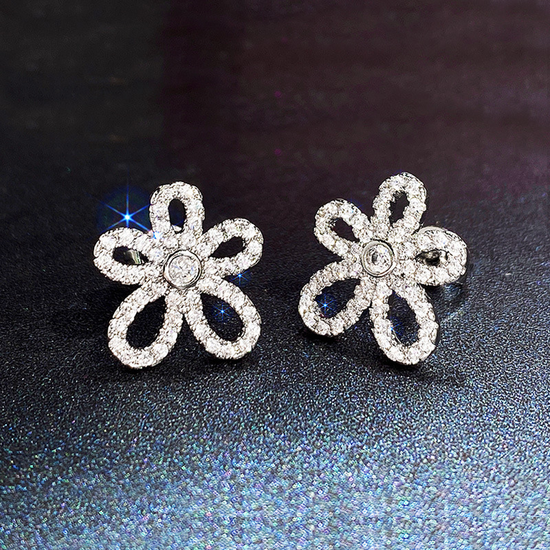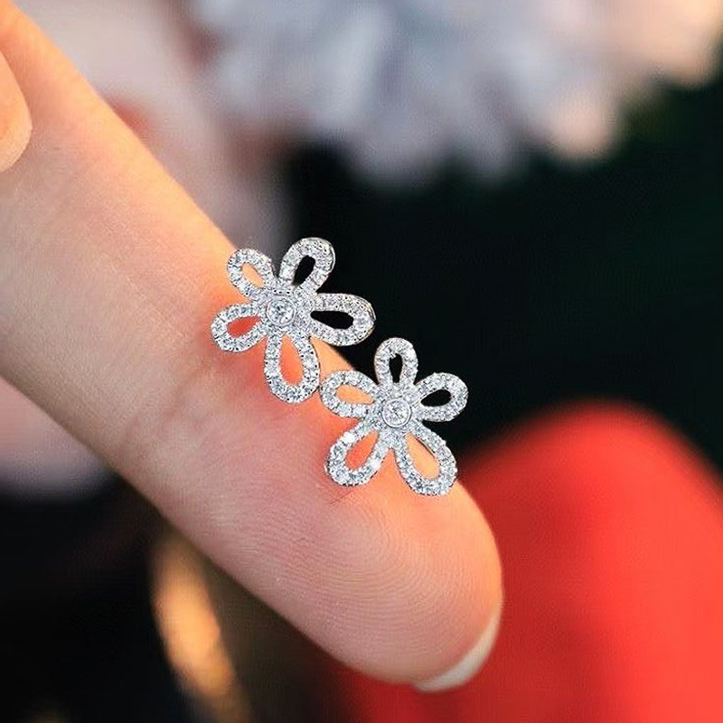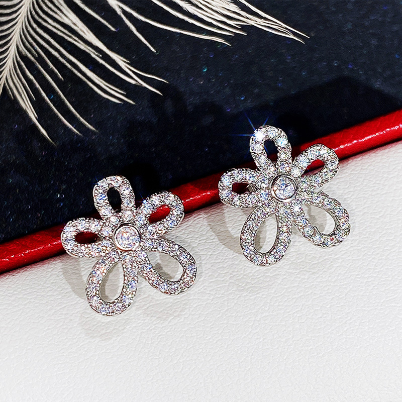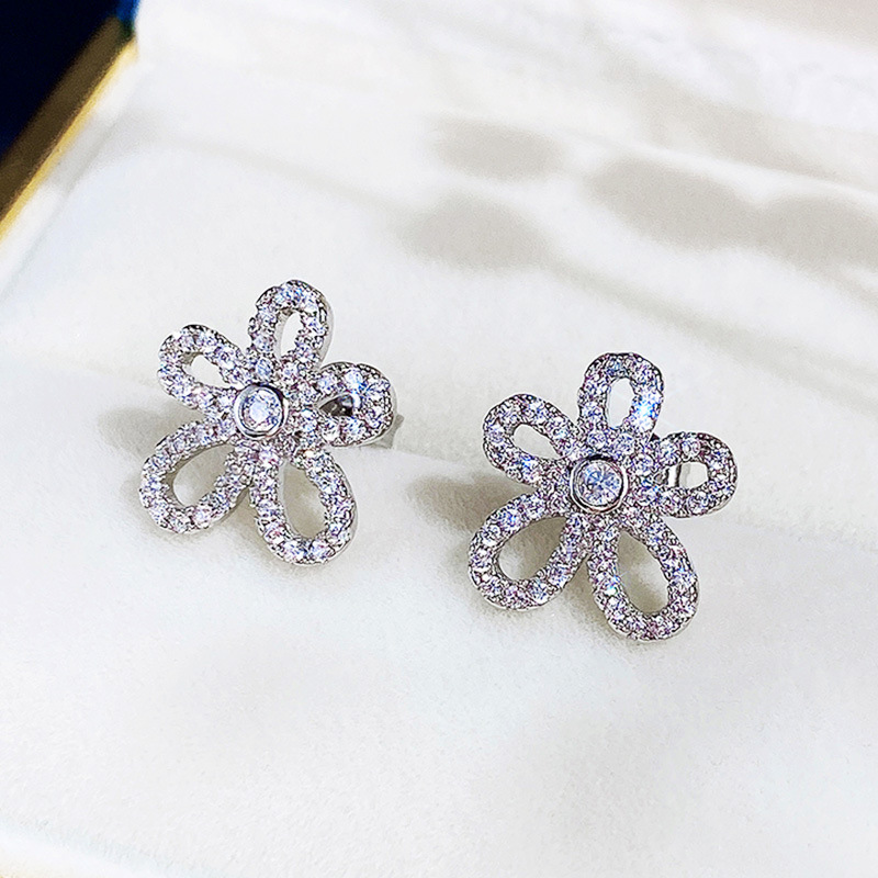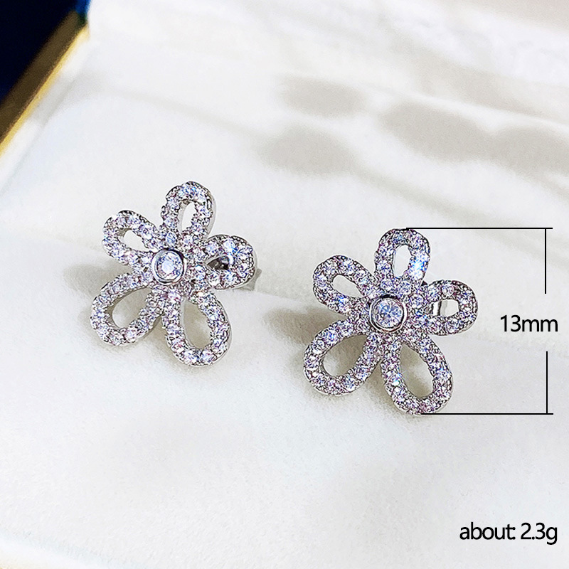Exquisite super fairy flower earrings three-dimensional petals full diamond sunflower earrings Korean temperament women's earrings