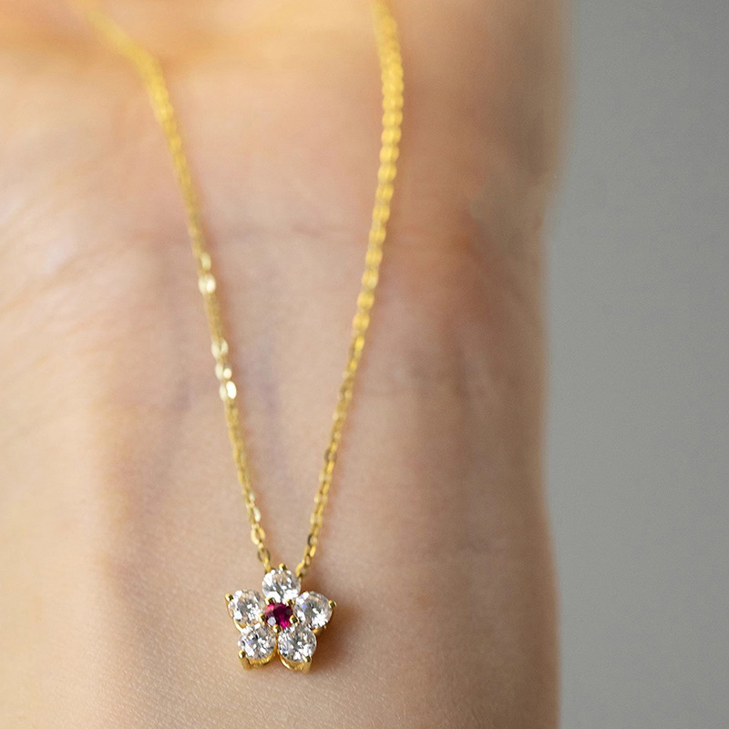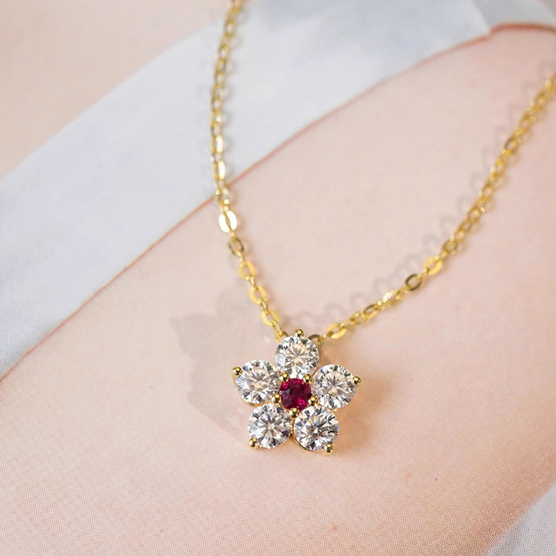 Exquisite super sparkling full diamond plum blossom ruby necklace temperament versatile elegant clavicle chain European and American design