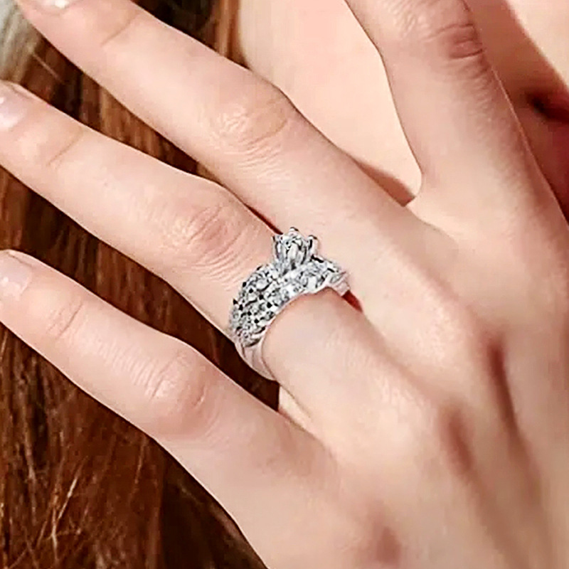 Micro-inlaid celebrity style classic all-match popular ring six-claw zircon wedding ring European and American style light luxury ring