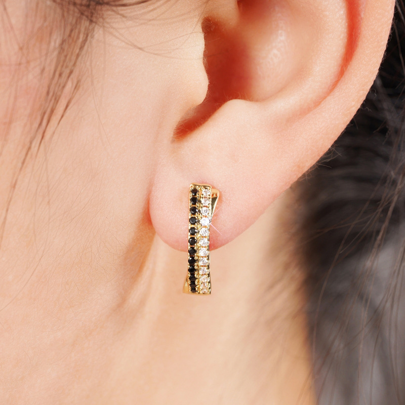 Factory direct sales design ear clips for women, two-tone zircon geometric earrings, personalized popular style