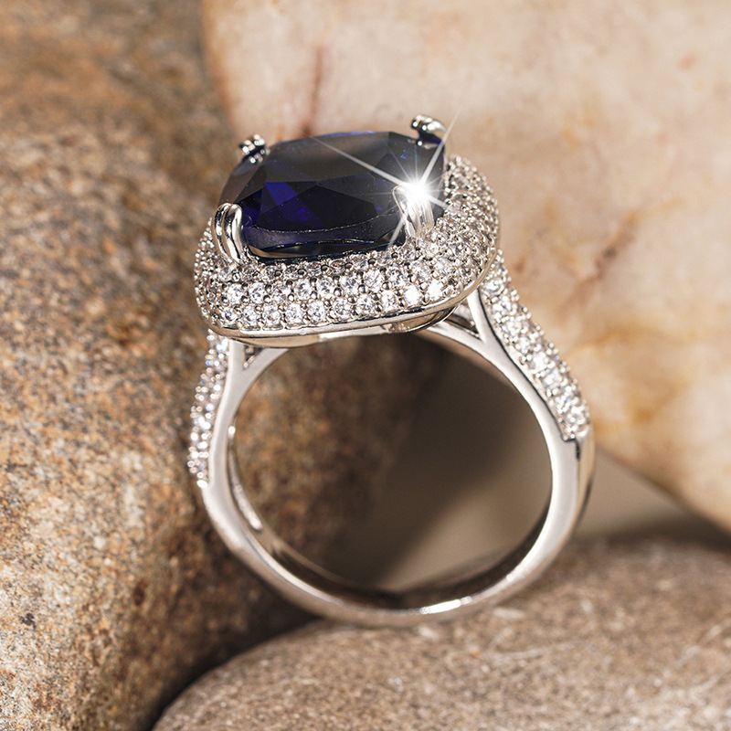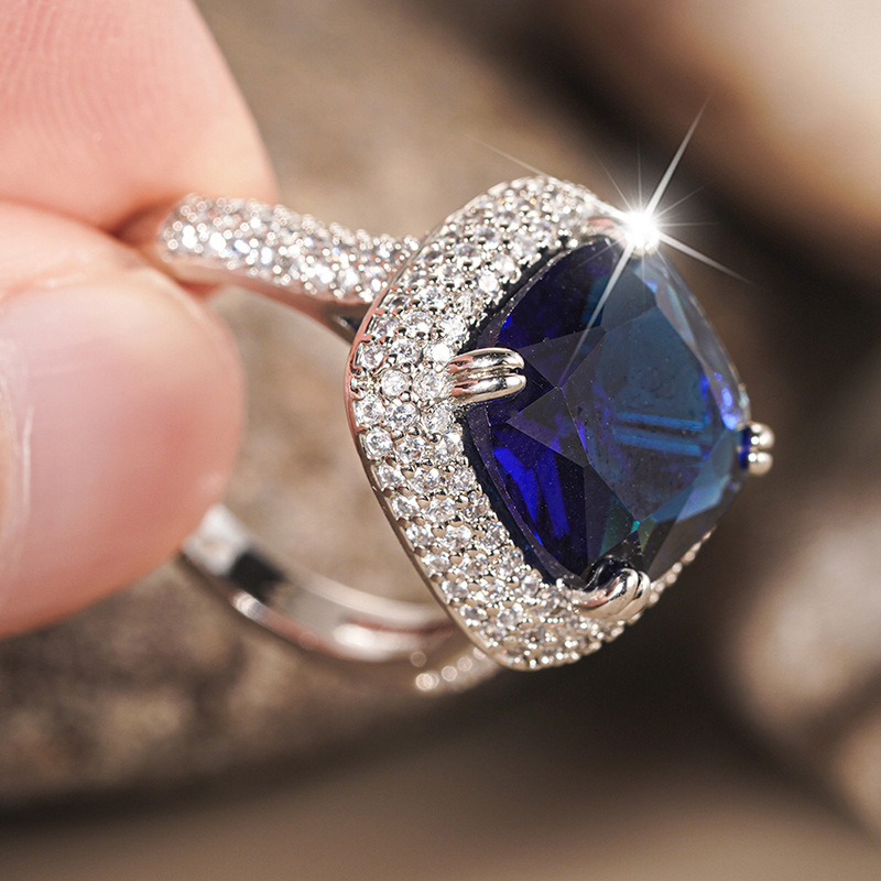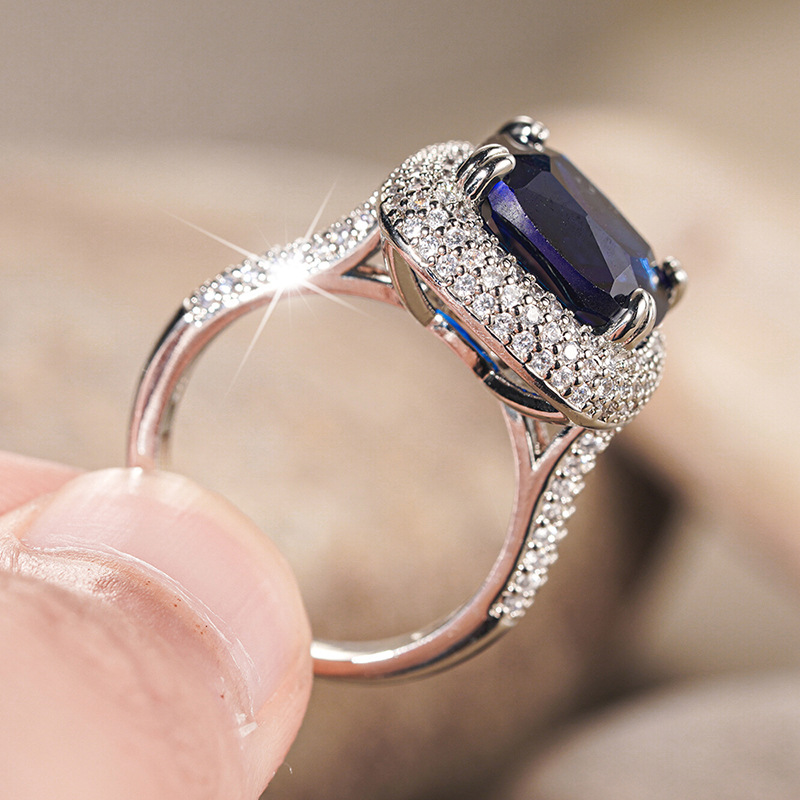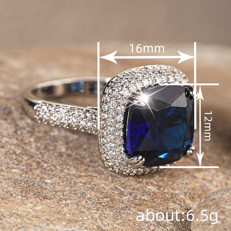 Hot selling new princess square ring European and American hot style inlaid zircon women's jewelry engagement proposal ring