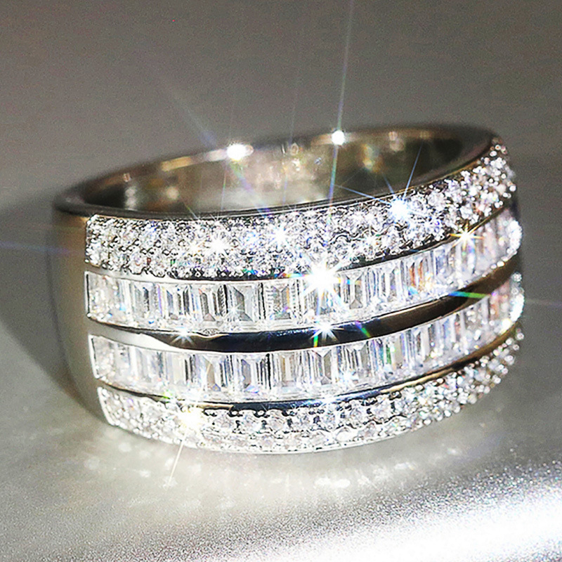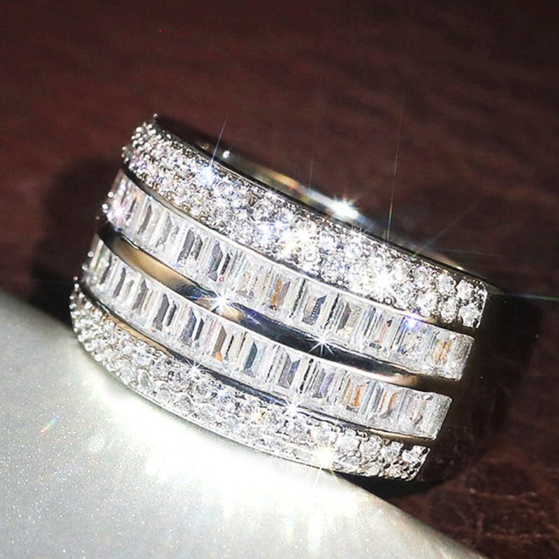 Micro-inlaid celebrity style classic all-match popular ring six-claw zircon wedding ring European and American style light luxury ring