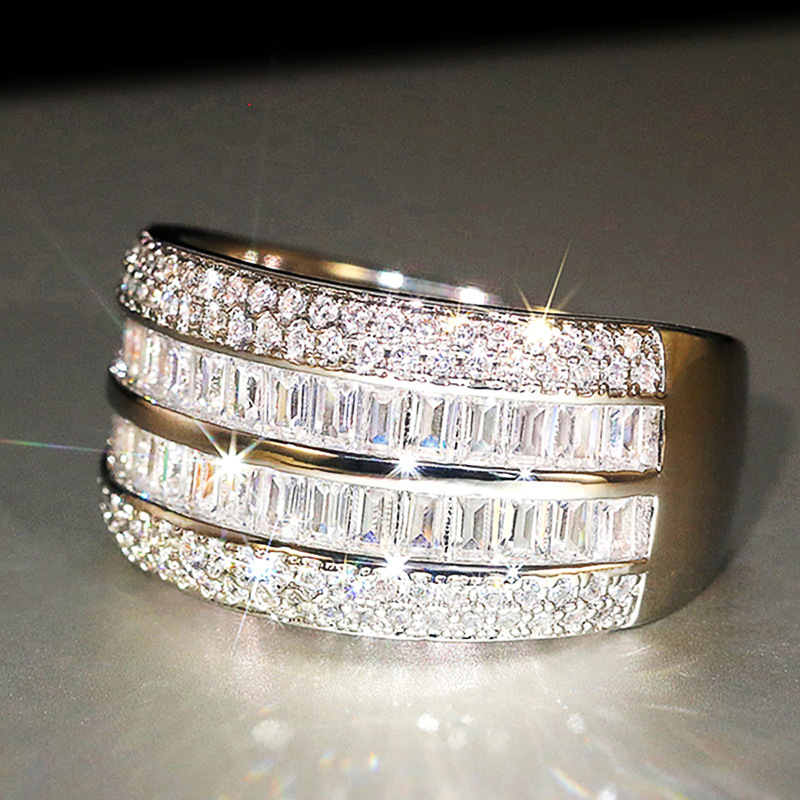 Factory direct sales hot selling ring for women micro inlaid zircon geometric ring shiny chic fashionable style