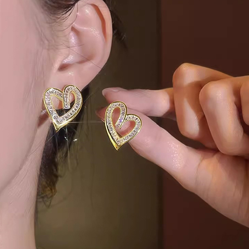 Factory direct sales of new earrings with heart hollow design, niche Korean style, elegant and super popular