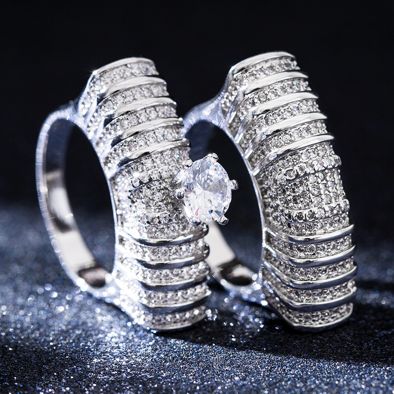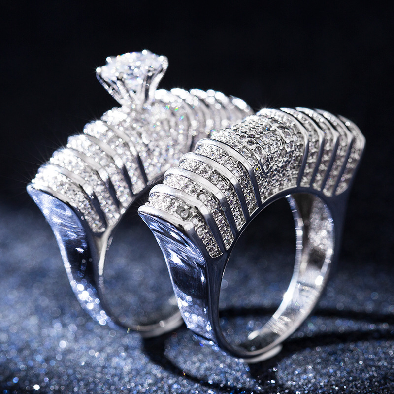 Factory direct sales of new European and American luxury double-layer ring hot-selling zircon hollow plated hot-selling hand jewelry ring for women
