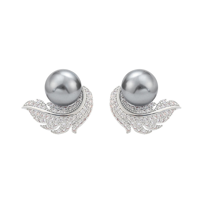 Factory direct sales of popular earrings for women, feather imitation pearl ladies' jewelry, micro-inlaid zircon round jewelry