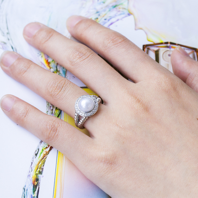 Factory direct sales of popular jewelry, fashionable and exquisite pearl and zircon engagement rings, copper-plated silver women's rings wholesale