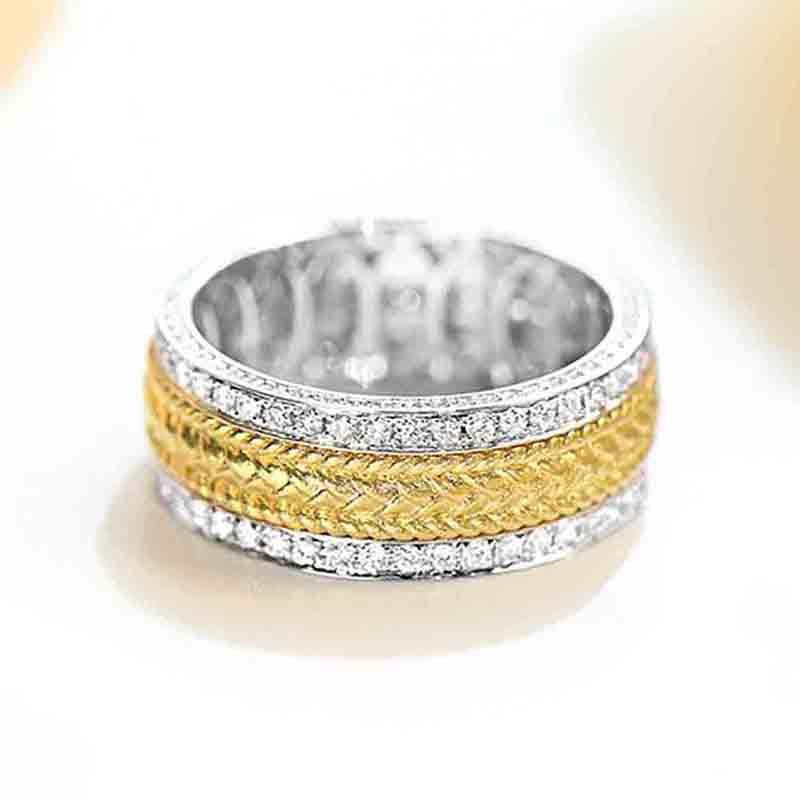 Classic four-claw imitation zircon micro-inlaid ring women's double row two-color twist arm ring engagement wedding ring women