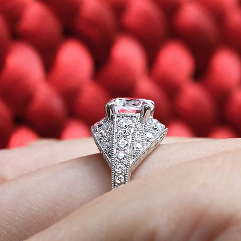 New zircon ring hollow cross four claws fashion design proposal wedding ring birthday gift ring