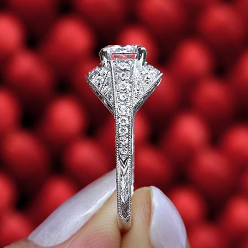 Micro-inlaid celebrity style classic all-match popular ring six-claw zircon wedding ring European and American style light luxury ring