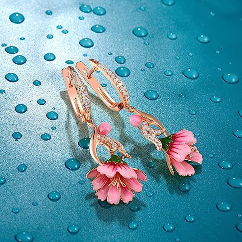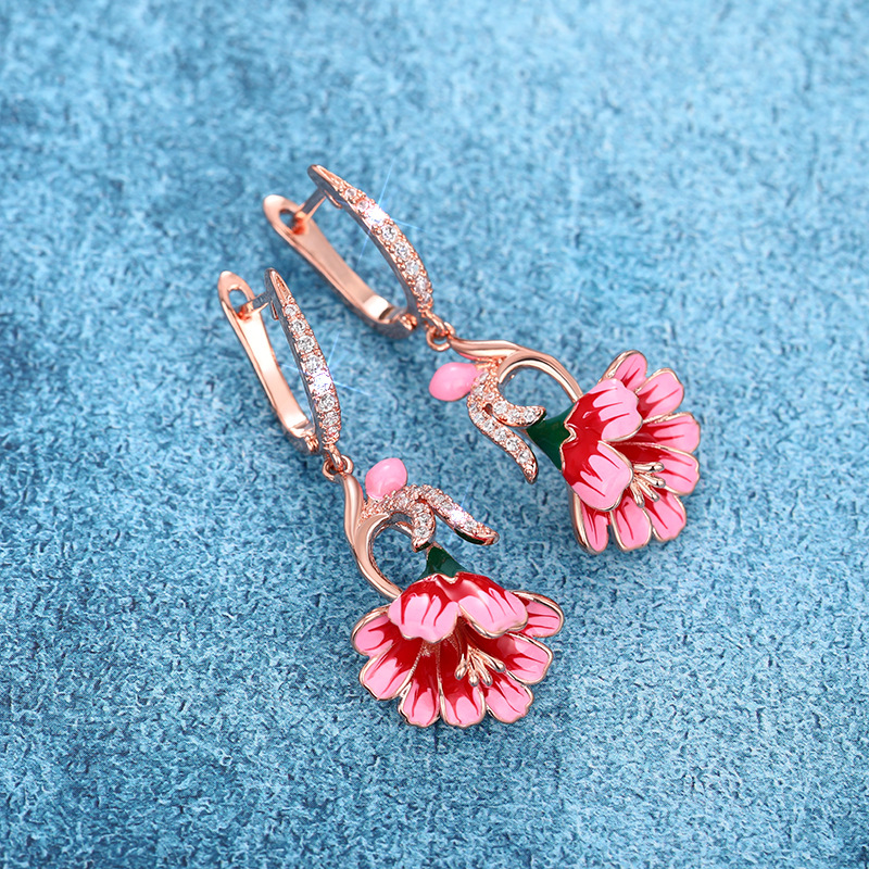 Fairy flower earrings for women, oil-drop flowers inlaid with zircon jewelry, fashionable pastoral hot-selling earrings