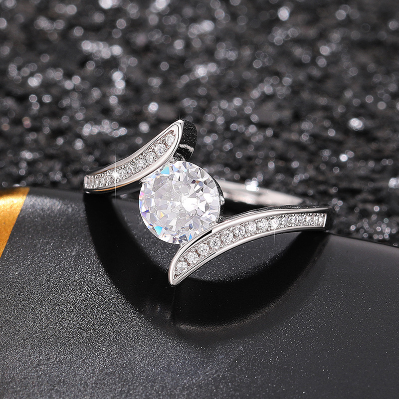 Micro-inlaid celebrity style classic all-match popular ring six-claw zircon wedding ring European and American style light luxury ring