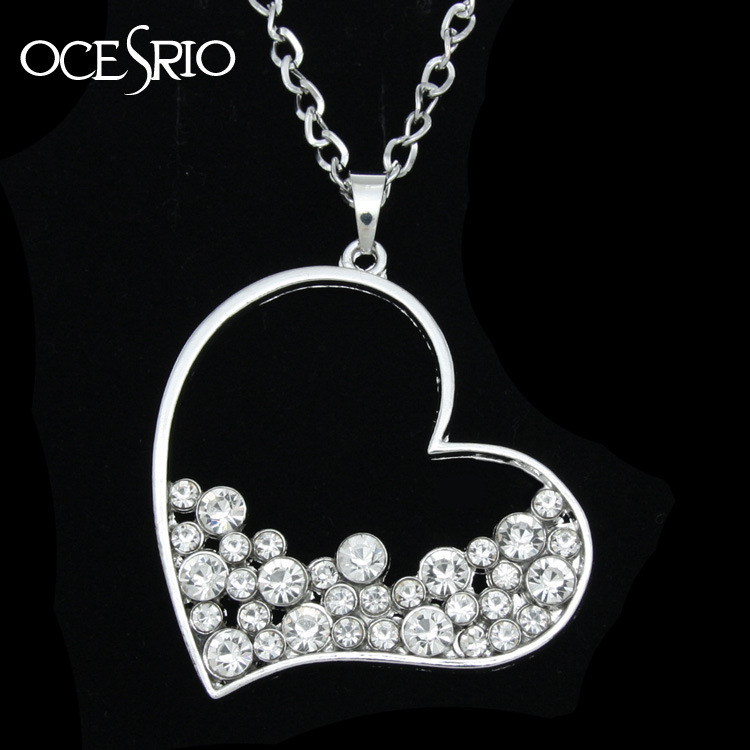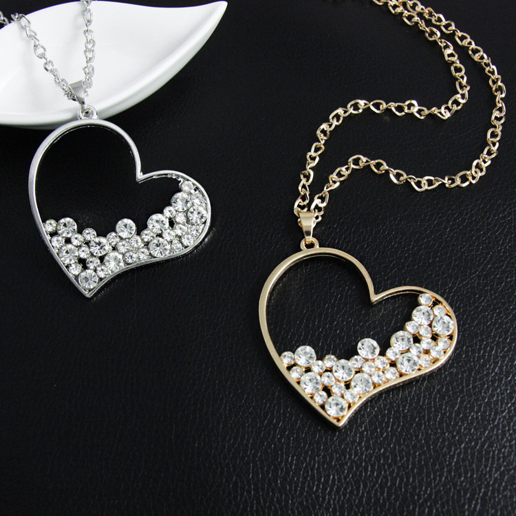 Fashion big peach heart crystal pendant necklace couple necklace European and American alloy jewelry nkm67