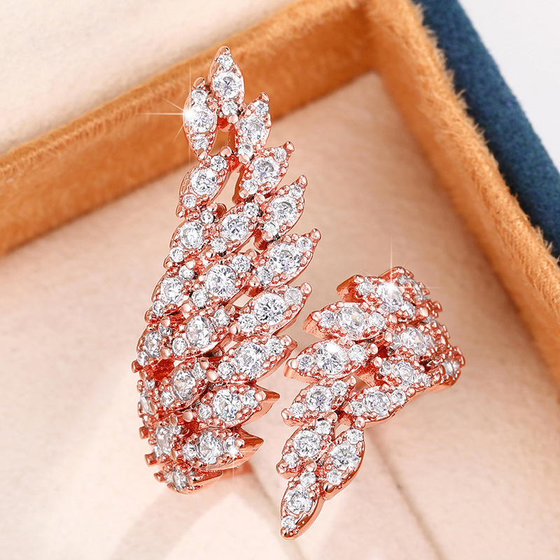 Fashion bridal jewelry angel feather ring fashionable temperament versatile zircon inlaid ring open ring