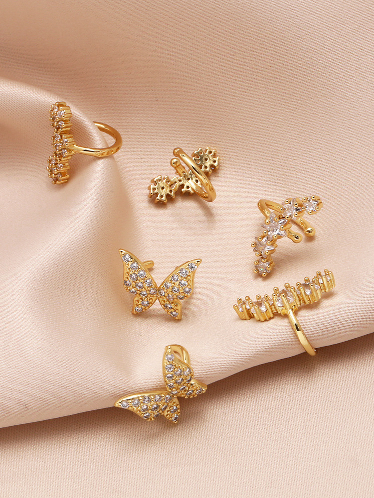 Fashion butterfly earrings for women niche light luxury high-end inlaid zircon no ear piercing ear clip era060