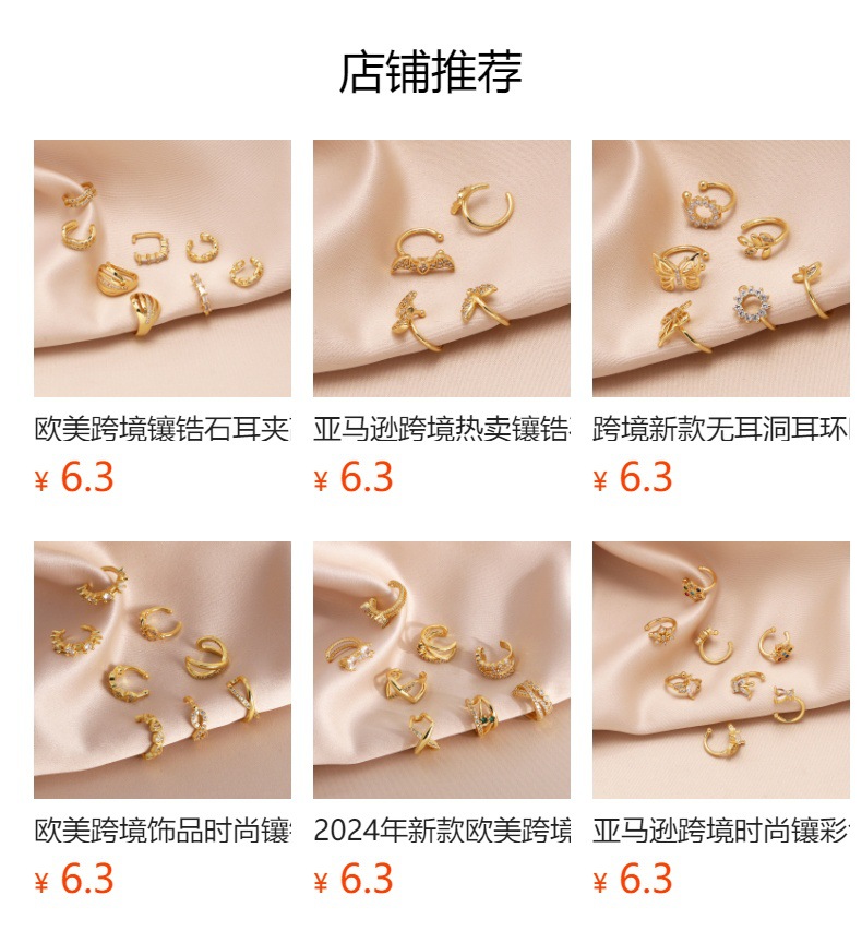 AS jewelry new hot-selling style fruit cherry ear bone clip copper plated 18k gold earrings ear clip era302