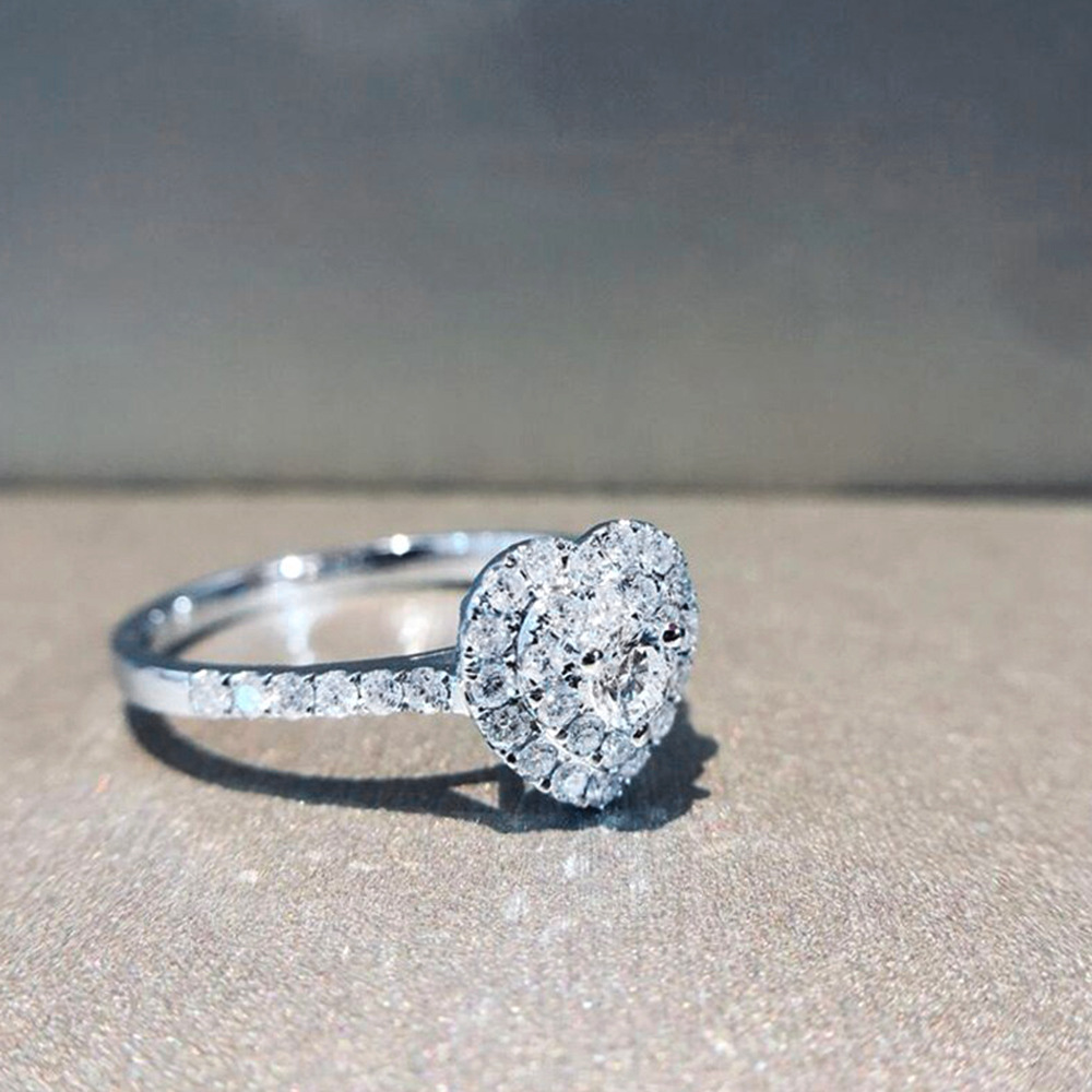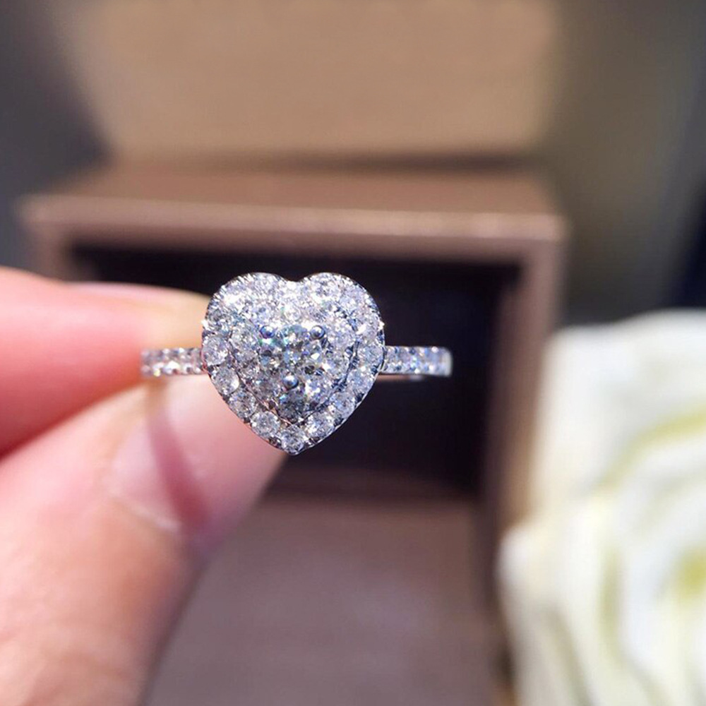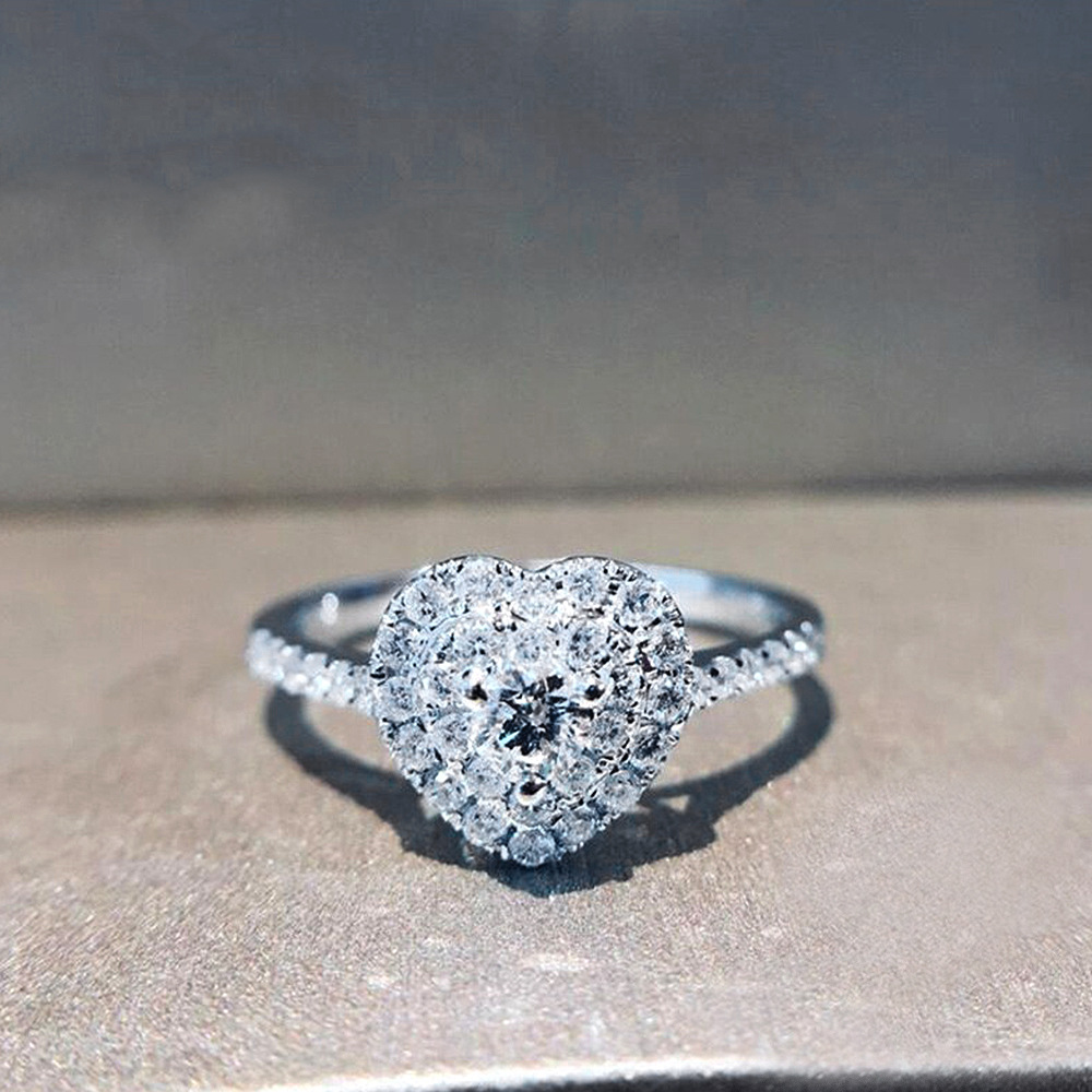 Fashion diamond ring Japanese and Korean trendy ring exquisite love zircon heart-shaped female ring micro-inlaid hand jewelry wholesale