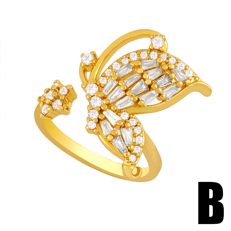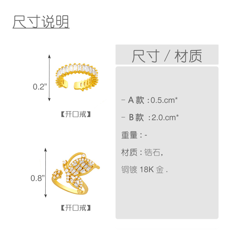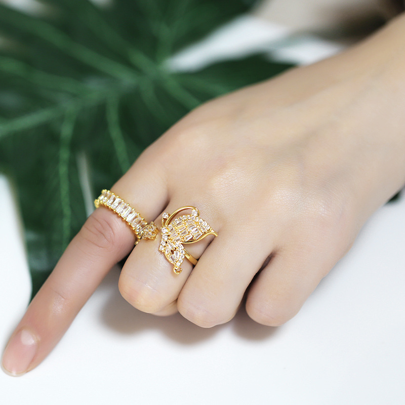 Fashion geometric cold style forest student ring female Japanese and Korean simple high-end butterfly zircon ring rik29