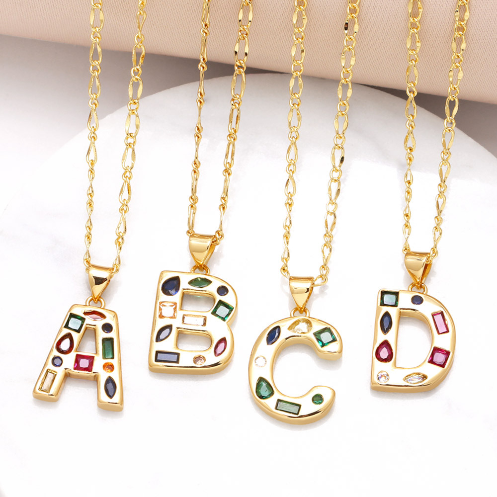 Jewelry new hot selling colored zircon 26 English letters pendant necklace gold-plated clavicle chain nku83