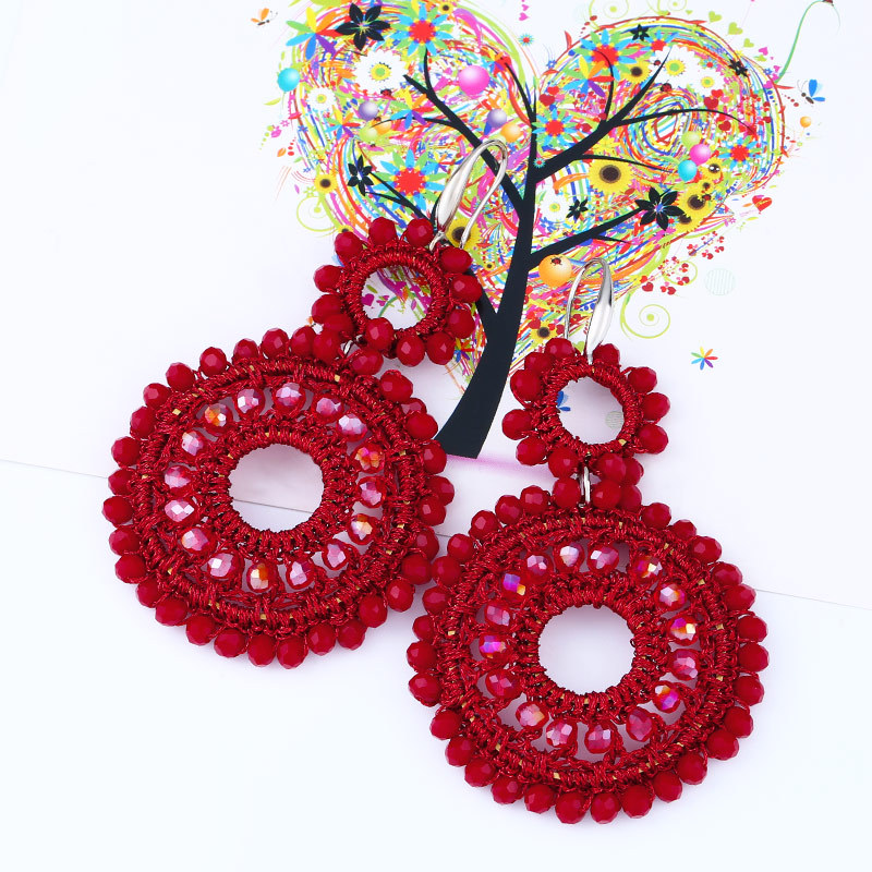 Fashion Internet celebrity accessories European and American fashion geometric rice bead earrings female exaggerated personality double circle bead earrings erm93