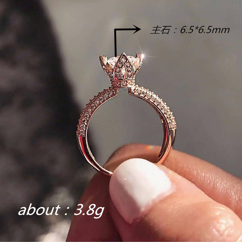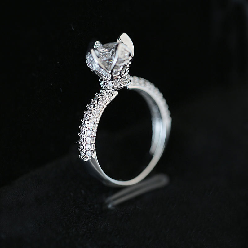 Fashion luxury accessories four-claw carat wedding ring inlaid with zircon women's simulated diamond ring wedding jewelry