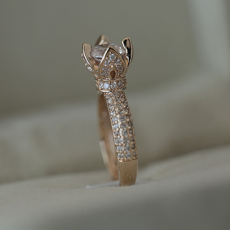 New best-selling super flash ring tree branch bud four-claw inlaid ring light luxury wedding ring for girlfriend