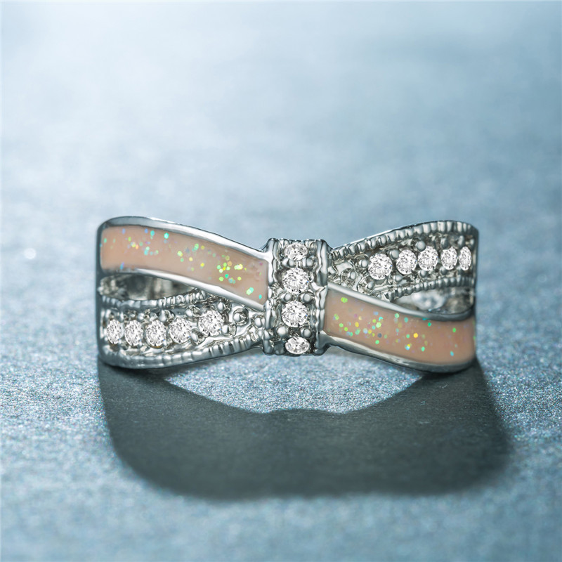 Fashion new creative bow-shaped opal ring for women, interwoven love, micro-inlaid rhinestones, hand jewelry