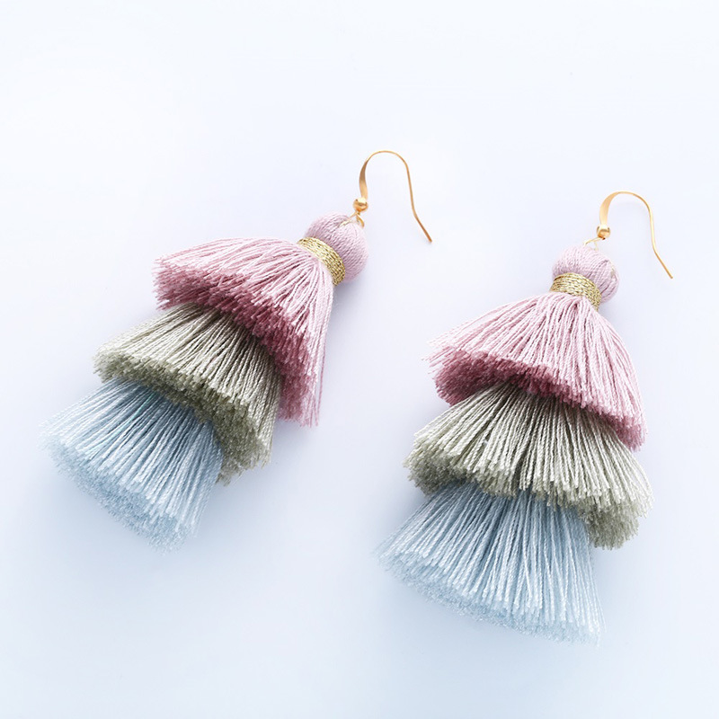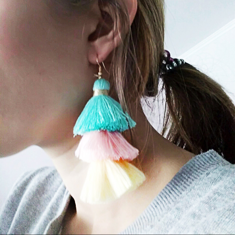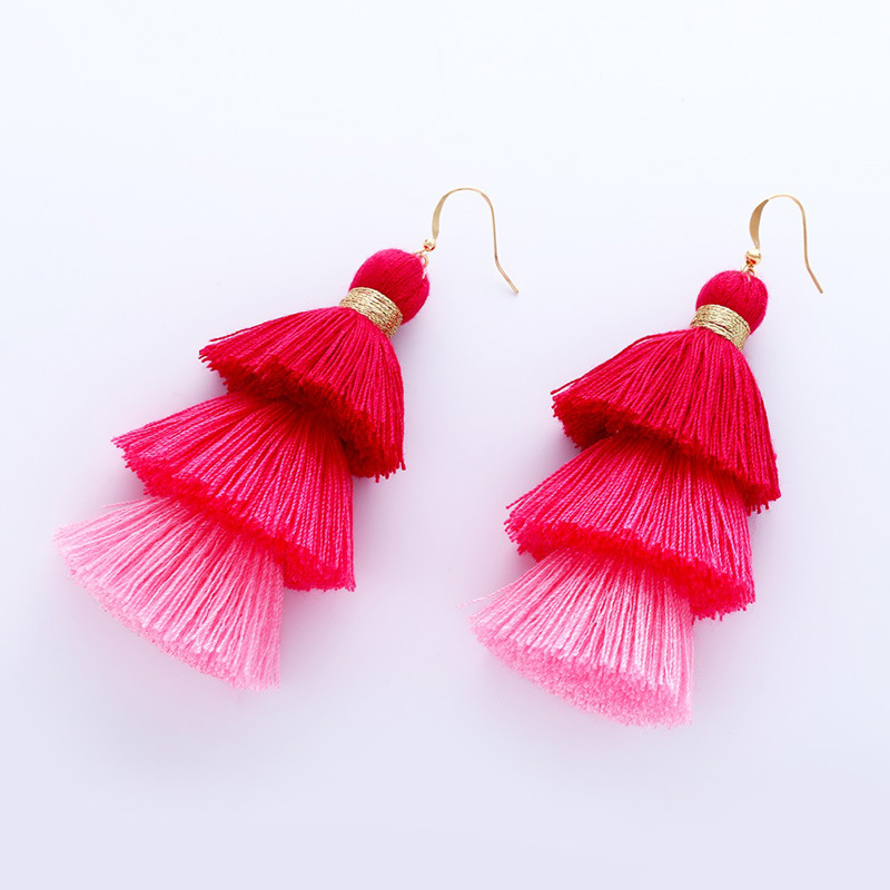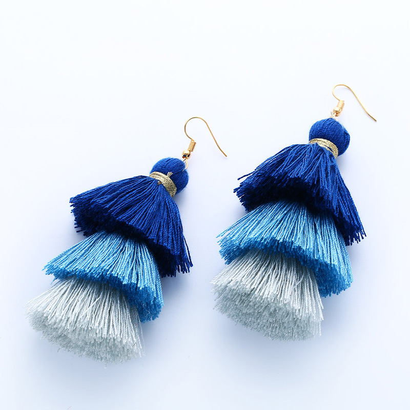 Fashion new style Bohemian ethnic style tassel earrings gradient color plush earrings jewelry direct sales erk04