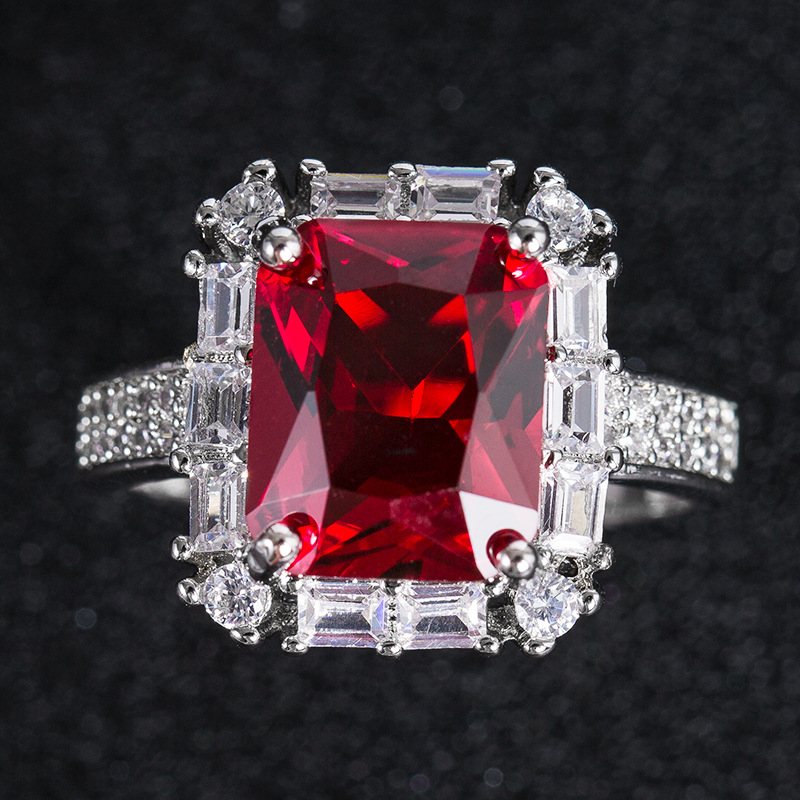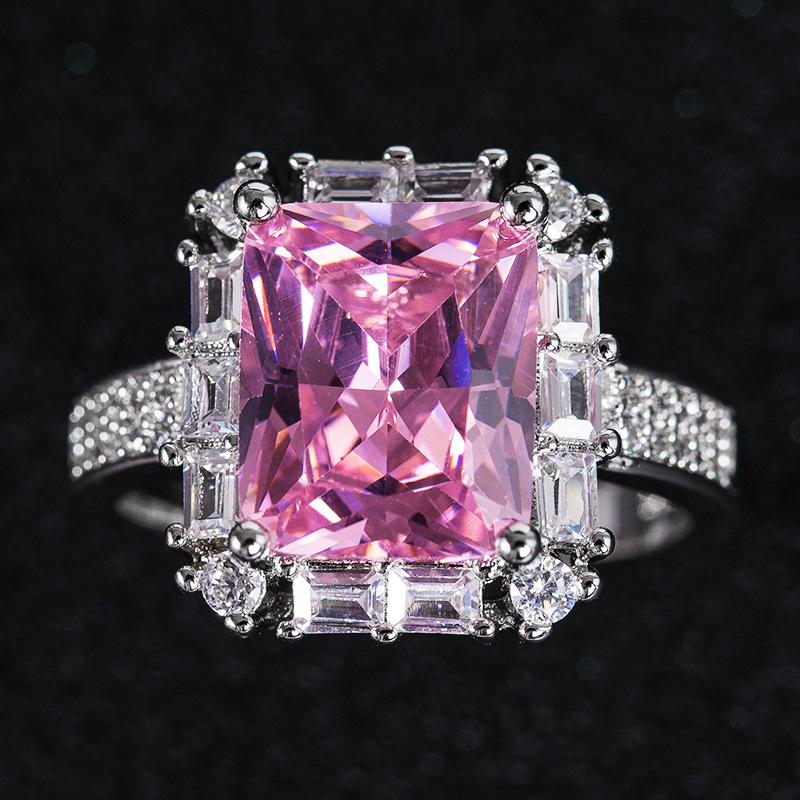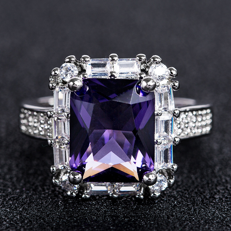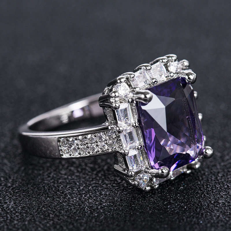 Hot selling new princess square ring European and American hot style inlaid zircon women's jewelry engagement proposal ring