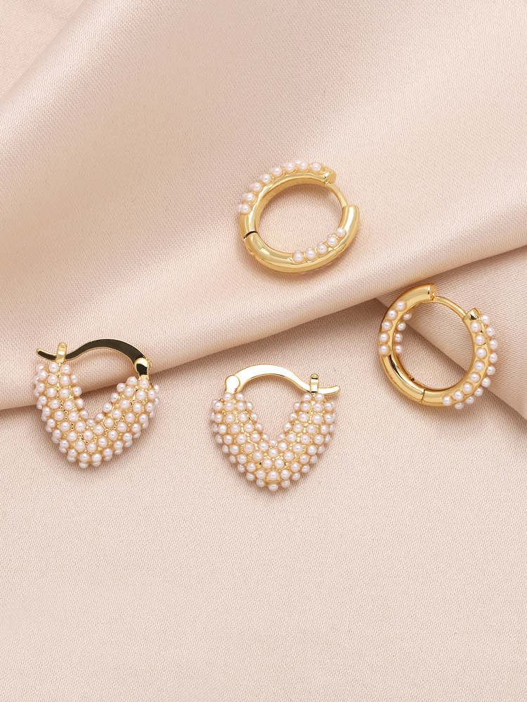 Fashion pearl heart earrings female niche light luxury high-end gold-plated round earrings erv53