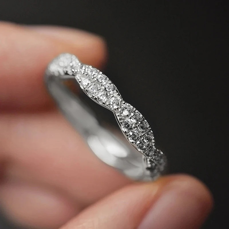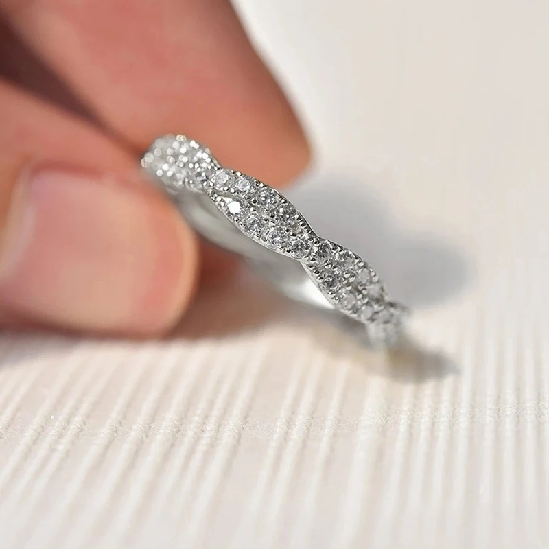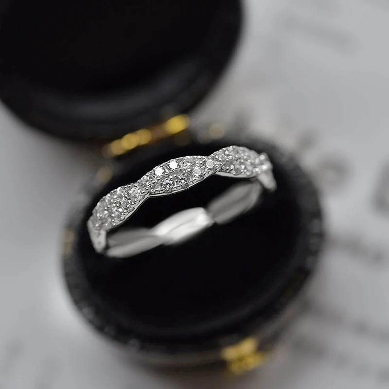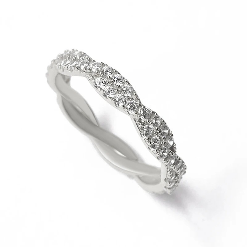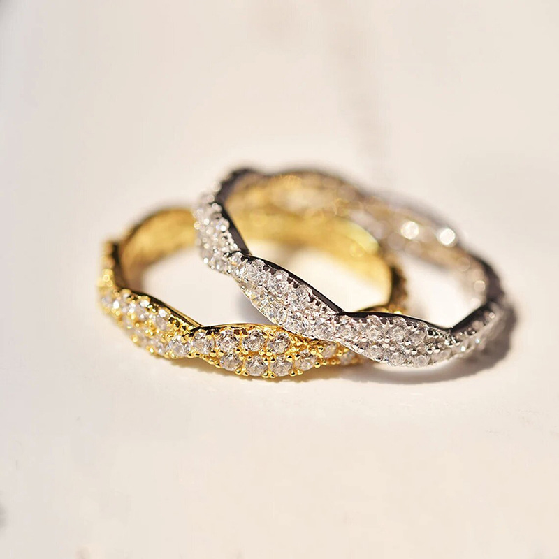 Classic four-claw imitation zircon micro-inlaid ring women's double row two-color twist arm ring engagement wedding ring women