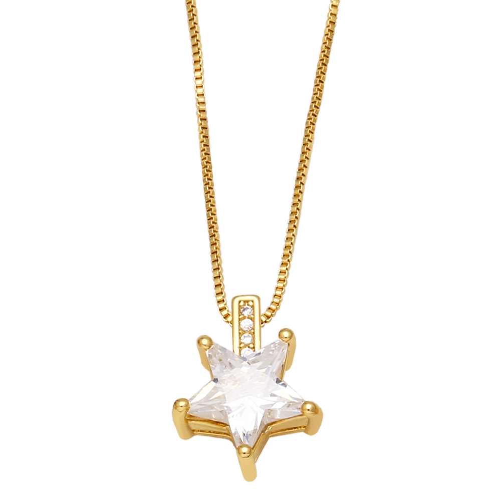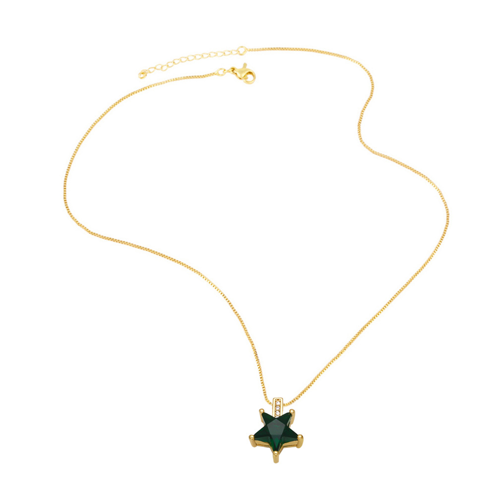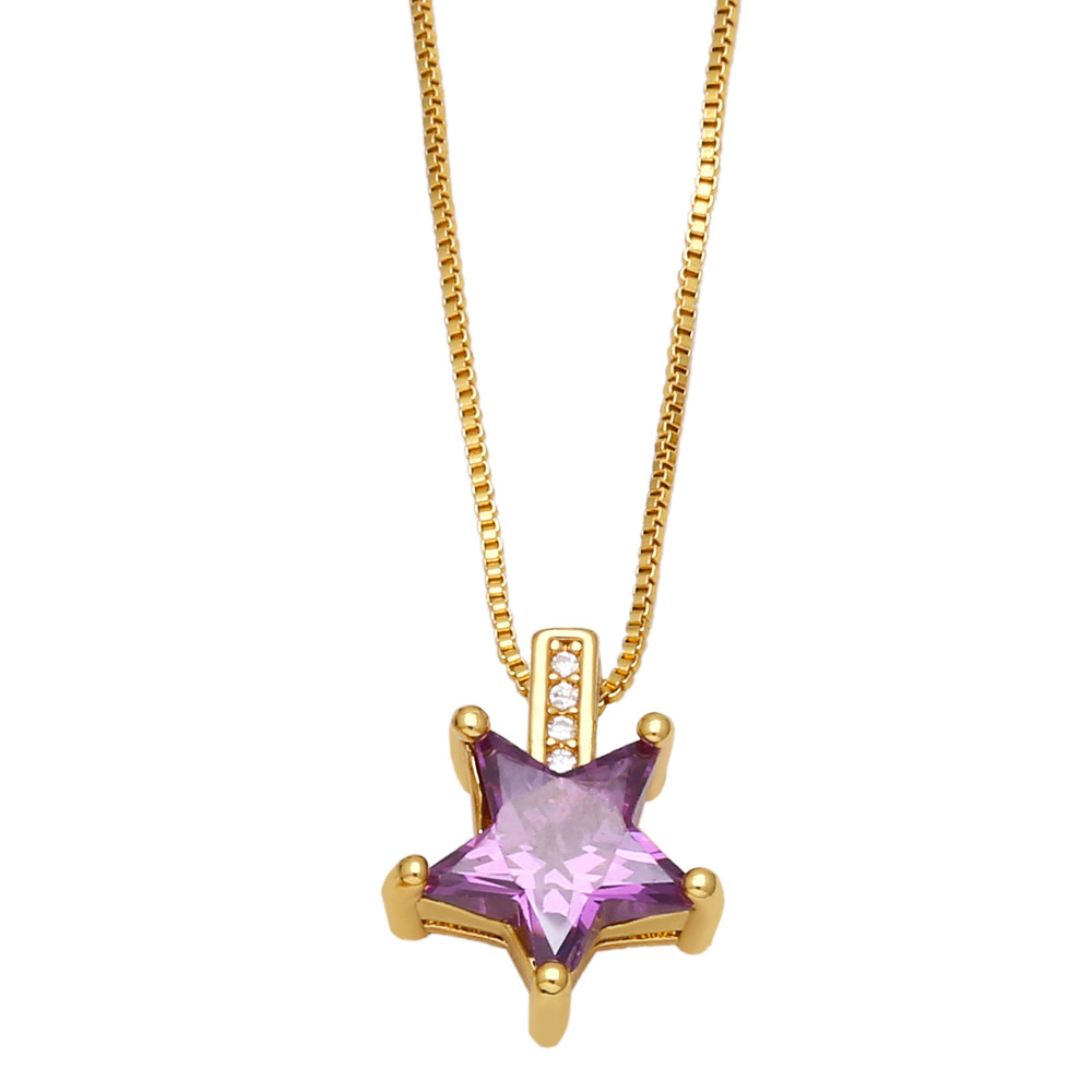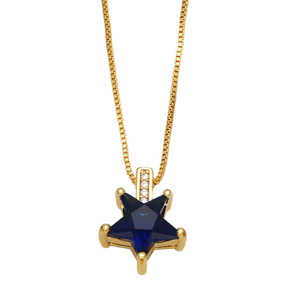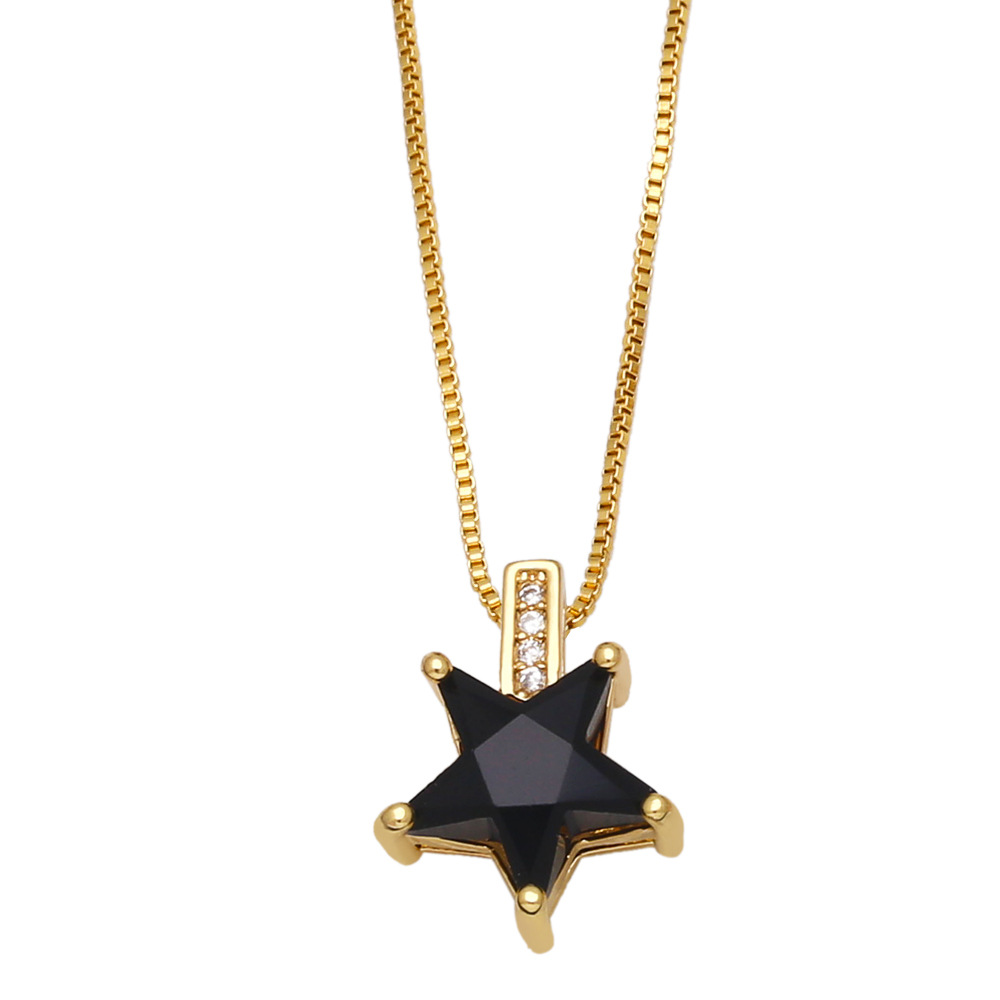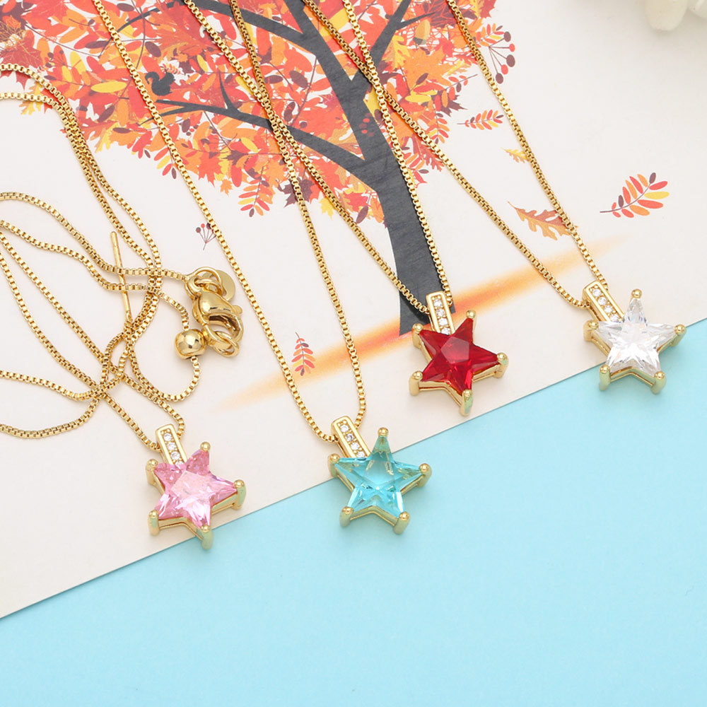 Fashion simple colored zircon five-pointed star necklace star pendant clavicle chain jewelry nkb375