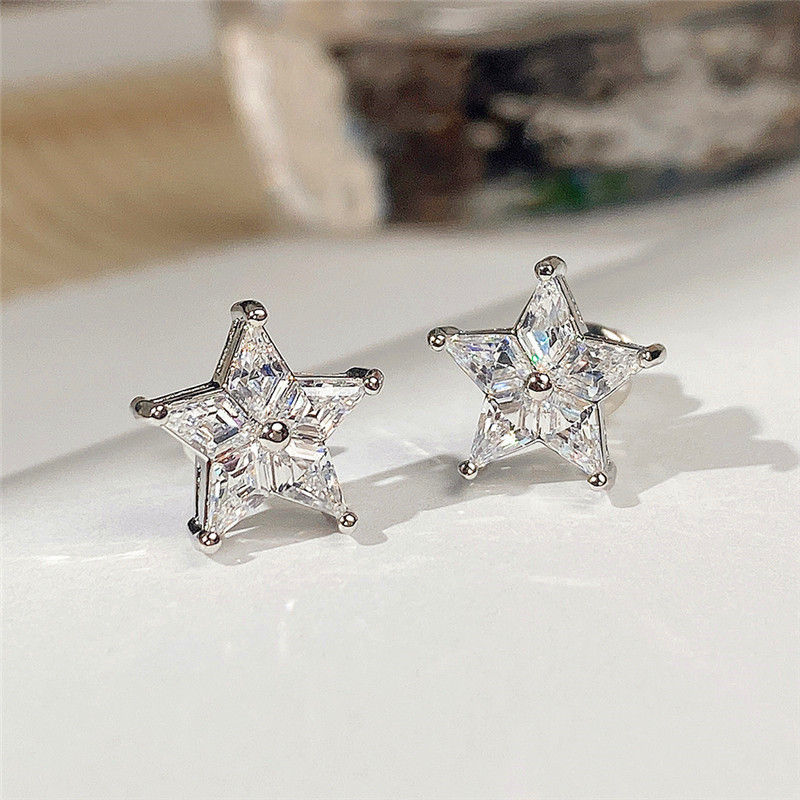Fashion star zircon earrings for women simple temperament five-pointed star earrings beautiful and versatile student earrings