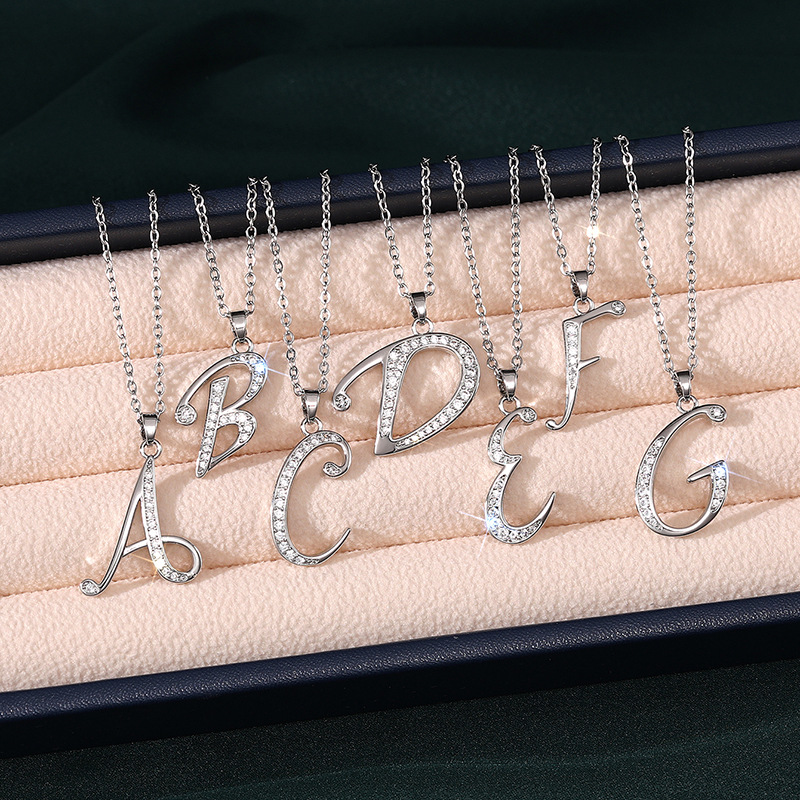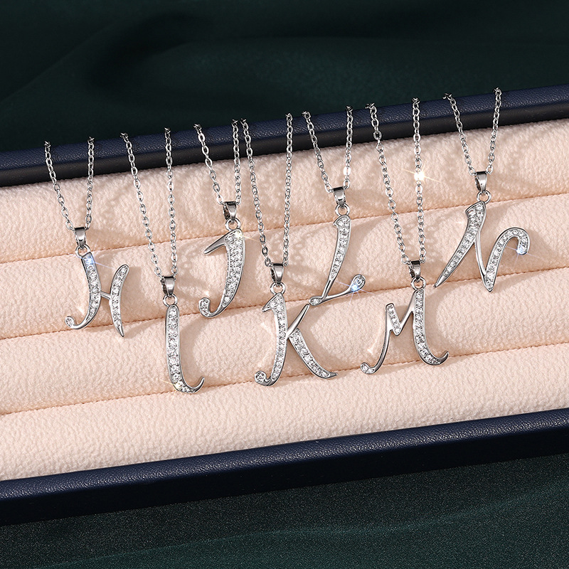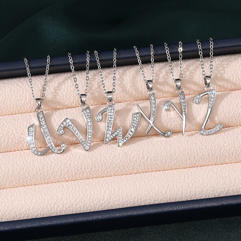 Letter necklace European and American new color zircon necklace with diamond surname English AZ letter necklace nkp25