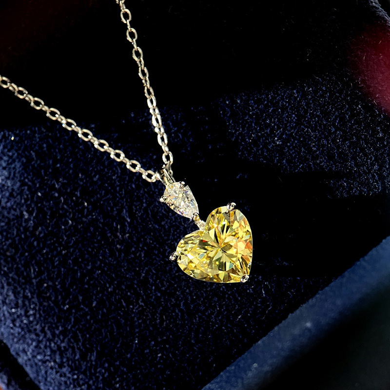 Fashionable and cool style necklace, elegant and light luxury niche love necklace, yellow diamond zircon pendant necklace