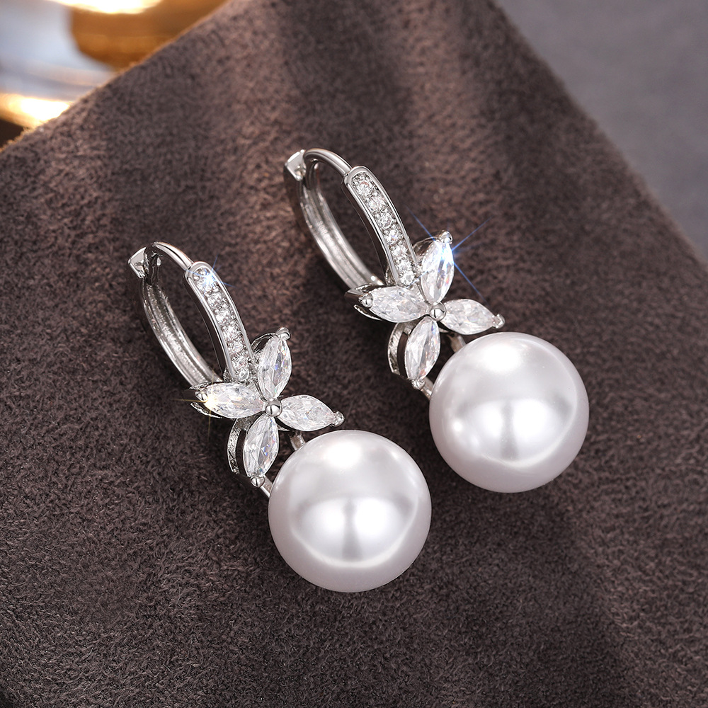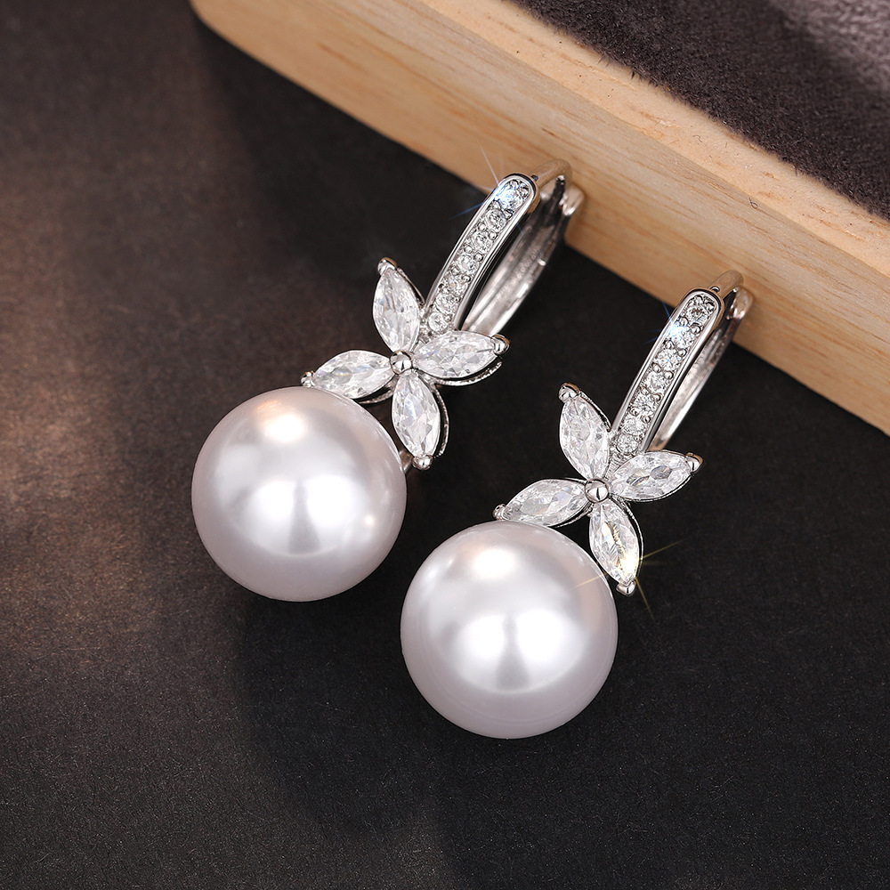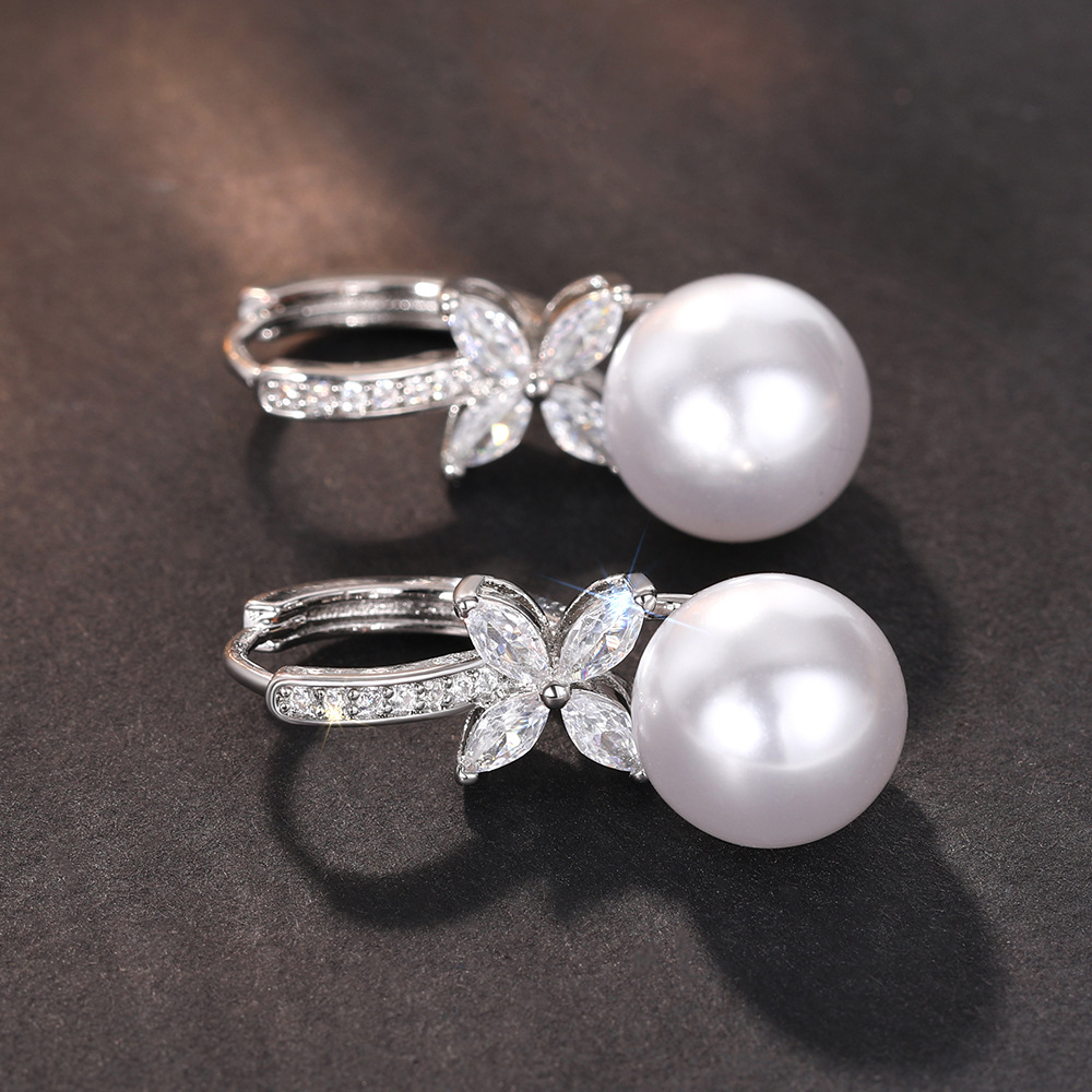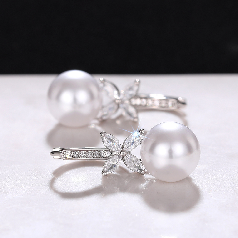 Fashionable and exquisite imitation pearl earrings for women, flower temperament, French princess jewelry, popular and elegant style
