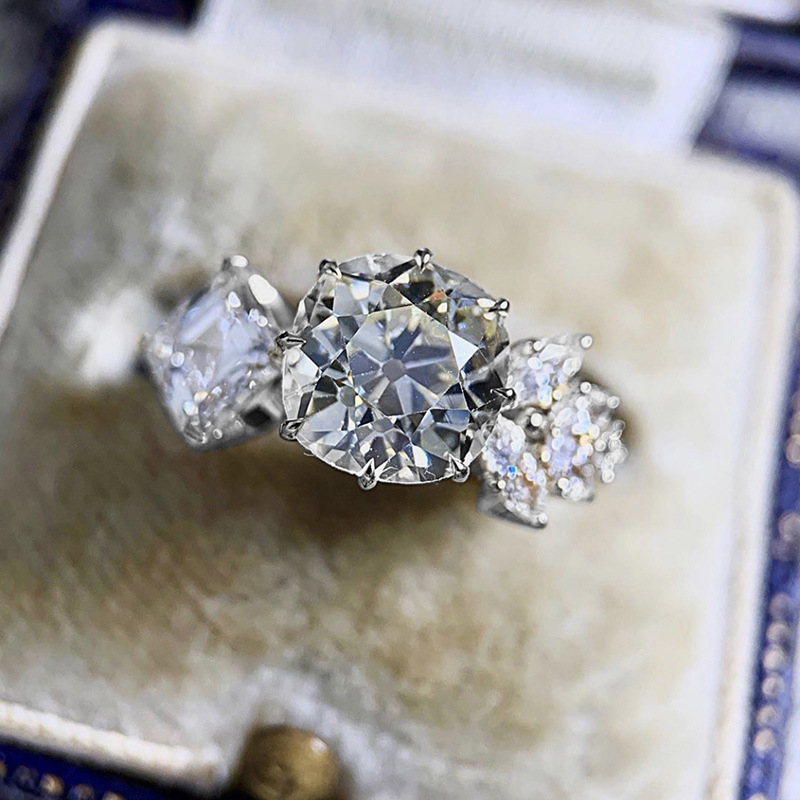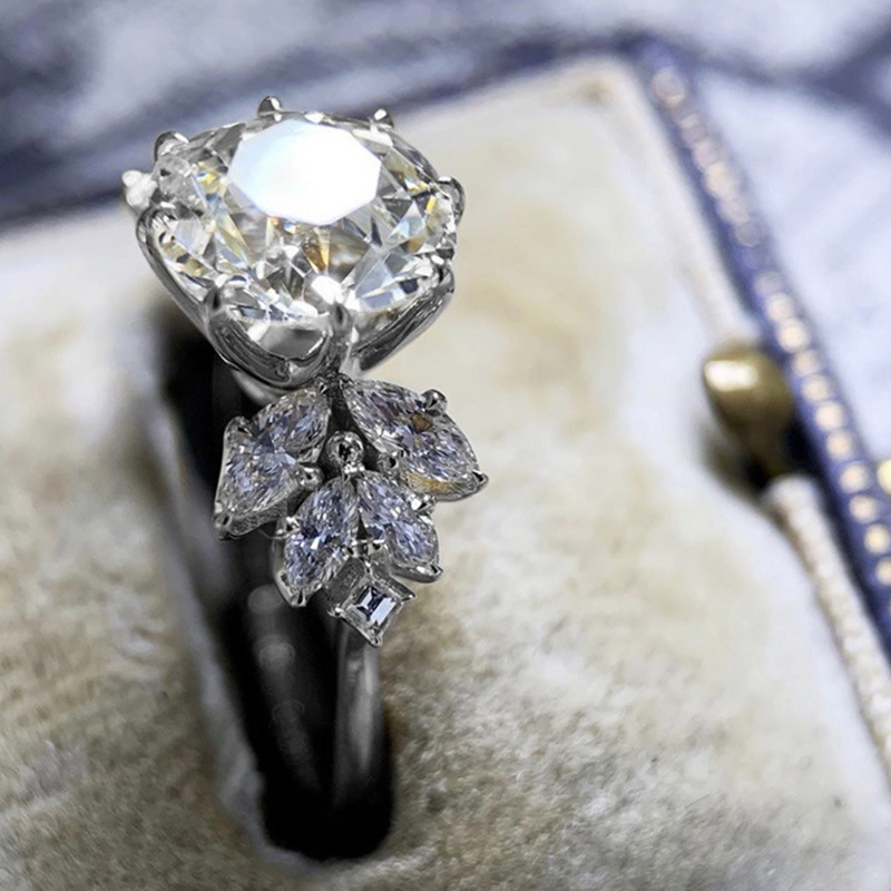 Micro-inlaid celebrity style classic all-match popular ring six-claw zircon wedding ring European and American style light luxury ring