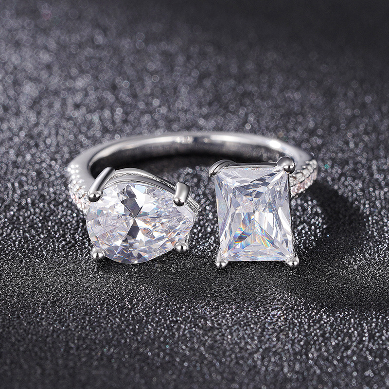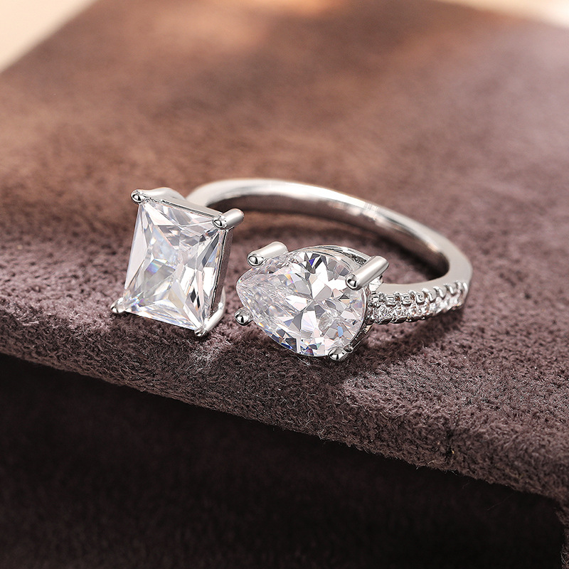 Fashionable and popular water drop geometric ring for women with adjustable square ring