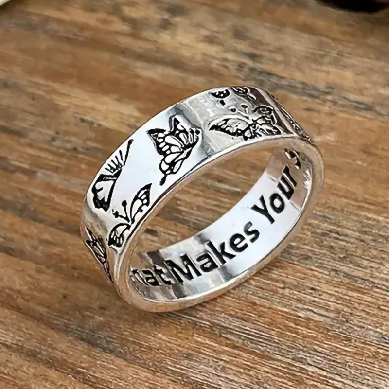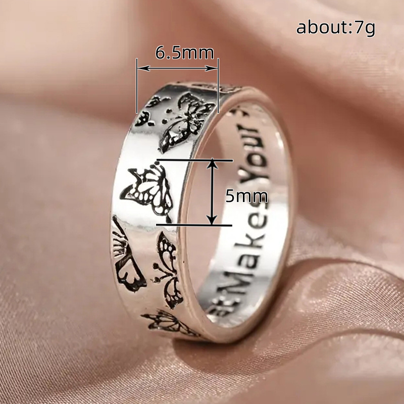 Fashionable and stylish engraved ring for women, simple and creative butterfly ring, fashionable metal matching ring